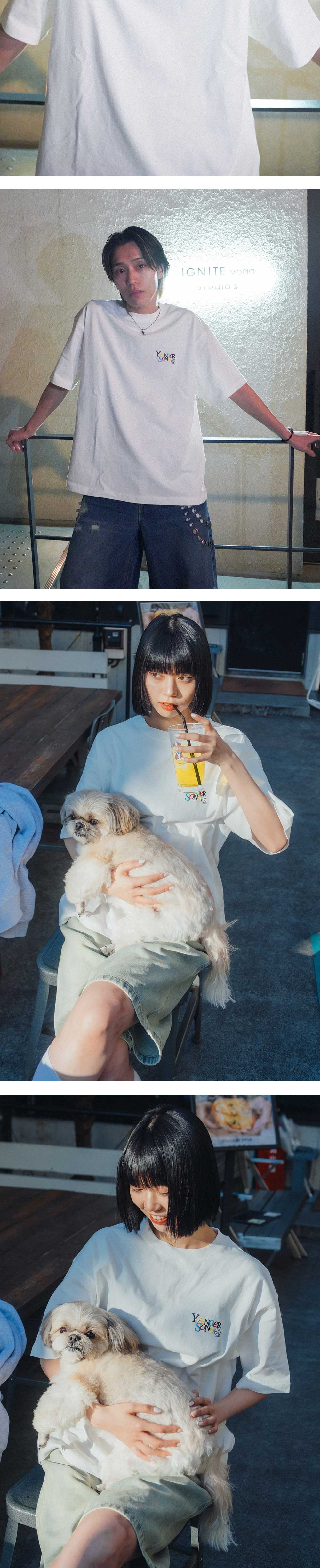 ㆍ피그먼트 워싱 가공한 20수 코튼 원단으로 제작 ㆍ덤블워싱&텐타가공으로 세탁 후 변형 최소화 ㆍ목부분에 헤리테이프를 사용하여 늘어남을 방지 ㆍ세미오버 핏으로 자연스러운 실루엣 연출 ㆍ가슴 부분에 프레피한 컬러 조합으로 표현된 자수 디테일 ㆍ위트있는 프린트로 뒷판 포인트 ㆍ유니섹스 상품으로 제작