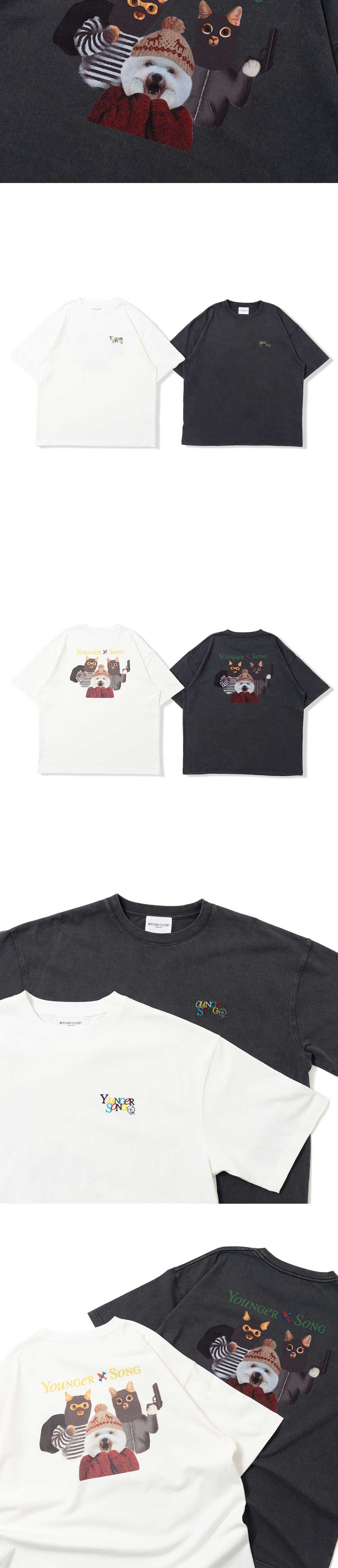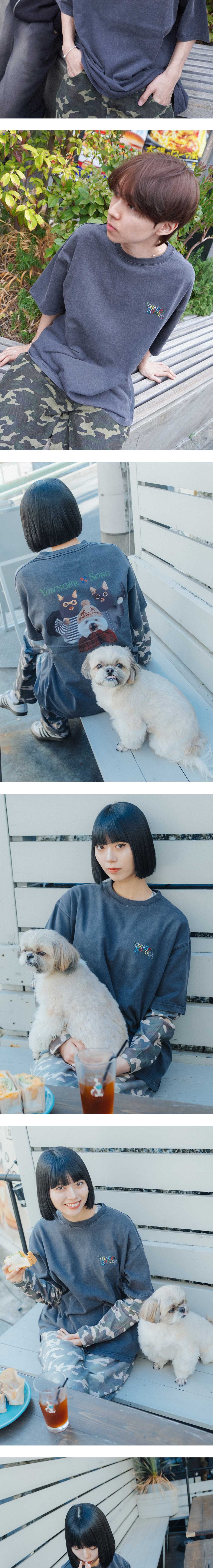 ㆍ피그먼트 워싱 가공한 20수 코튼 원단으로 제작 ㆍ덤블워싱&텐타가공으로 세탁 후 변형 최소화 ㆍ목부분에 헤리테이프를 사용하여 늘어남을 방지 ㆍ세미오버 핏으로 자연스러운 실루엣 연출 ㆍ가슴 부분에 프레피한 컬러 조합으로 표현된 자수 디테일 ㆍ위트있는 프린트로 뒷판 포인트 ㆍ유니섹스 상품으로 제작