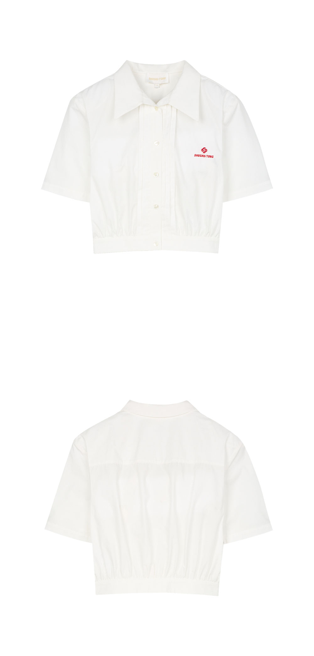 슈슈통 우먼 쇼트 슬리브 턱 블라우스 화이트 - 25SS