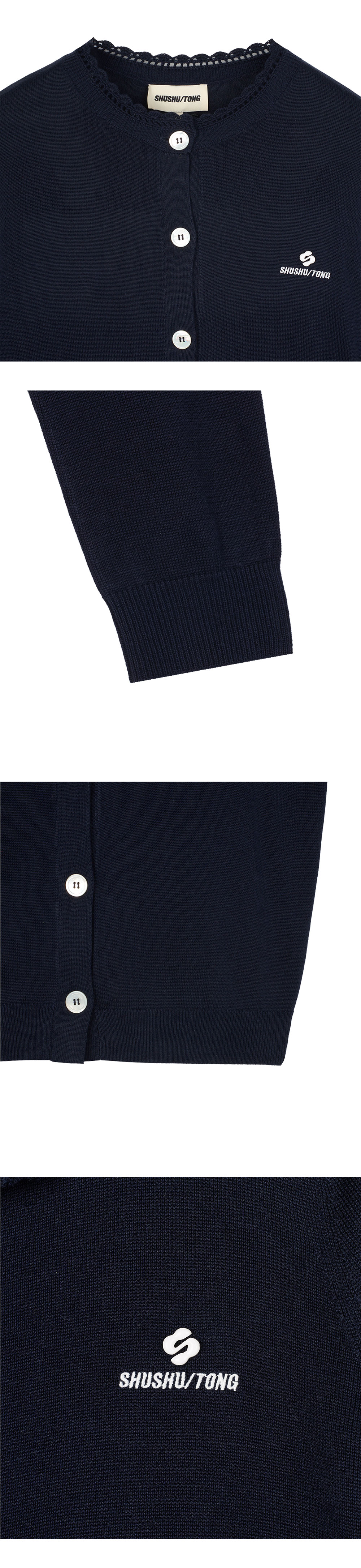 슈슈통 우먼 로고 스티치 니트 가디건 네이비 블루 - 25SS