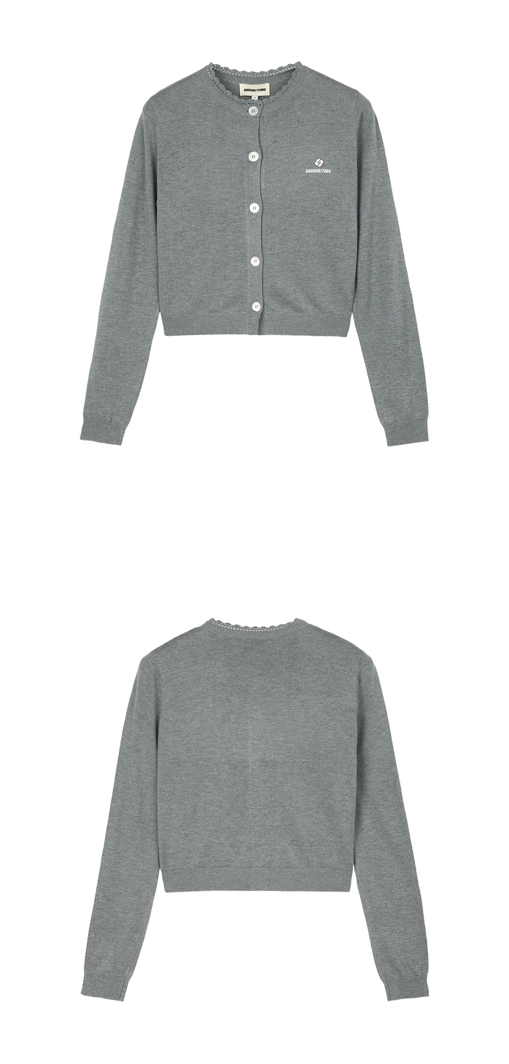 슈슈통 우먼 로고 스티치 니트 가디건 그레이 - 25SS