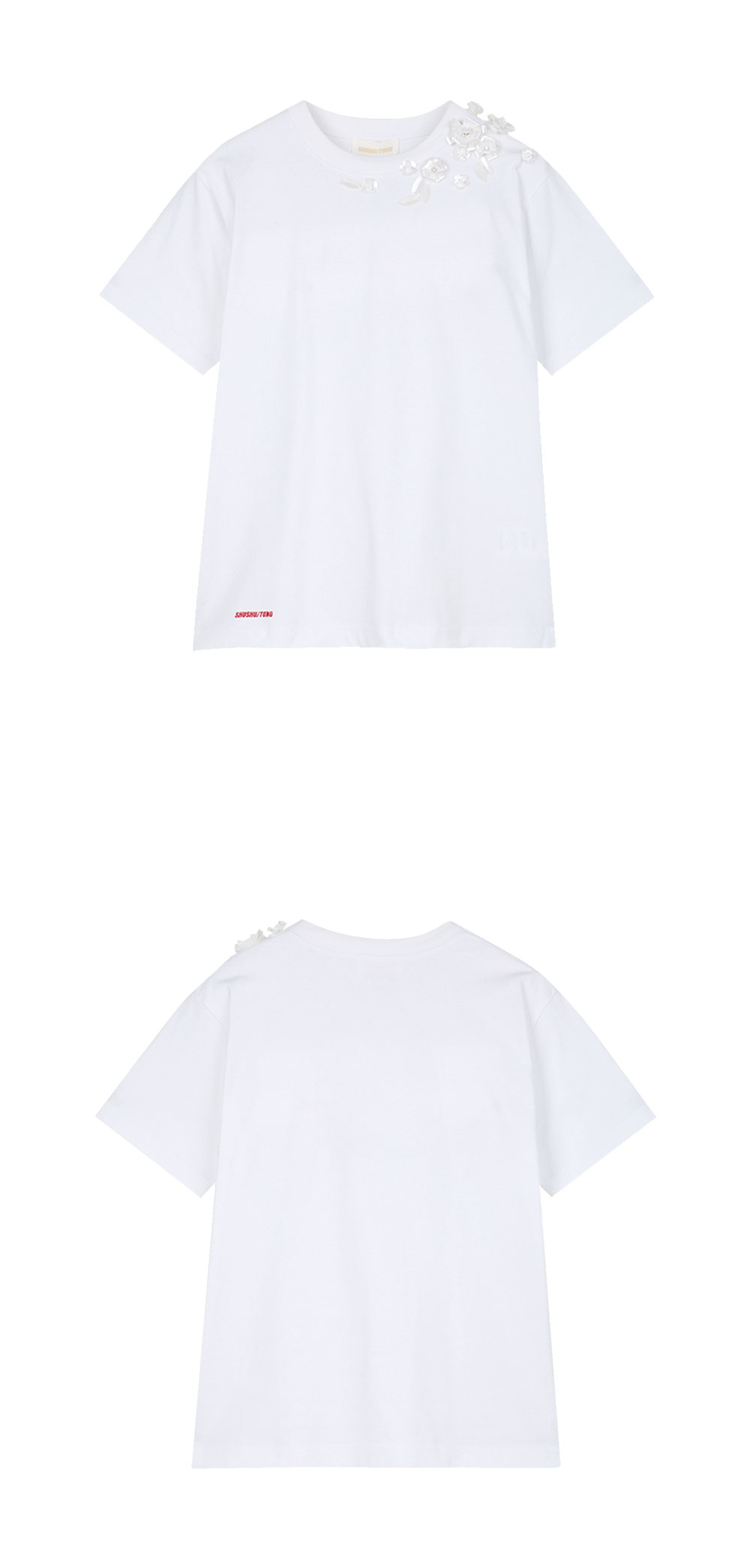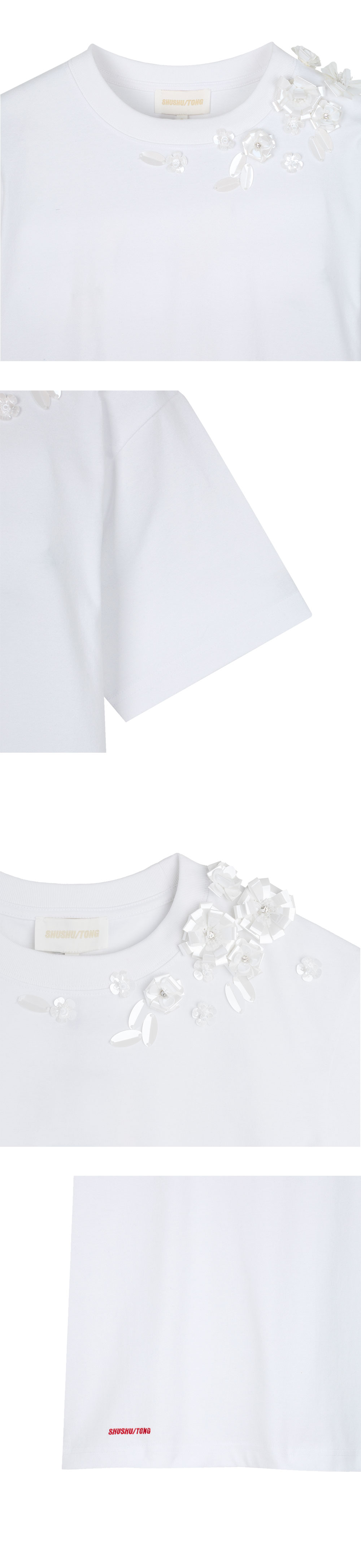 슈슈통 우먼 비즈 플로럴 티셔츠 화이트 - 25SS