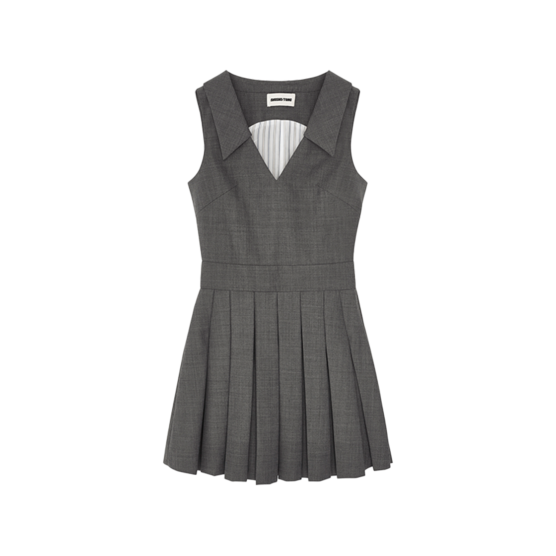 슈슈통 우먼 라펠 플리츠 드레스 그레이 - 25SS