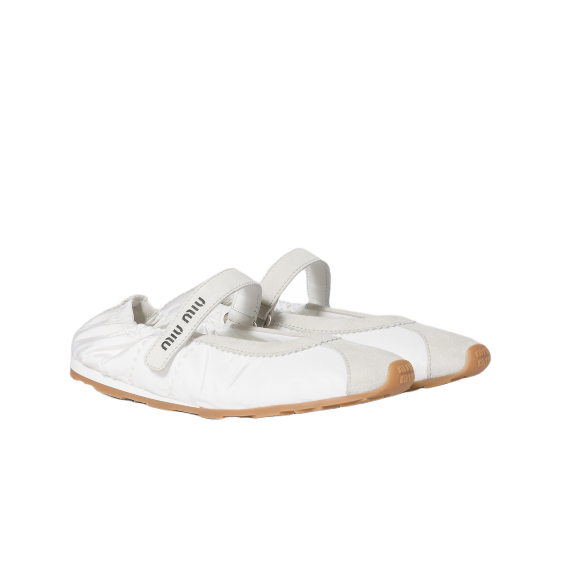 (W) Miu Miu Technical Fabric Suede Plume Ballerinas White