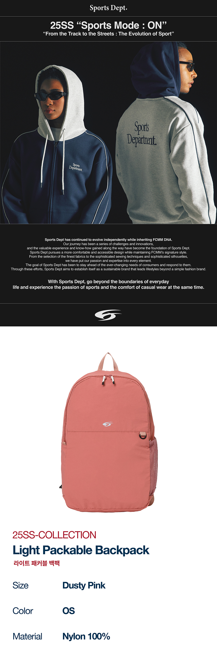 스포츠뎁트 라이트 패커블 백팩 더스티 핑크