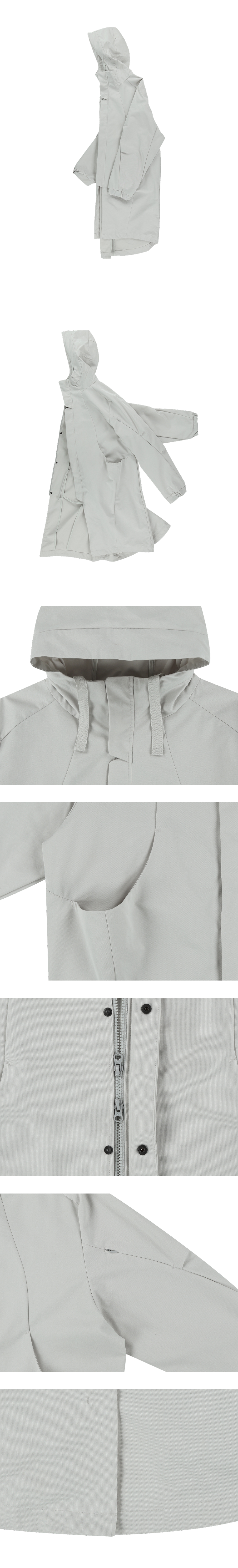 - 앞판 입체 포켓과 소매 콘실 지퍼 포켓 - YKK 미쉘 히든 스냅 사용 - 오버한 실루엣과 뒷판 날개