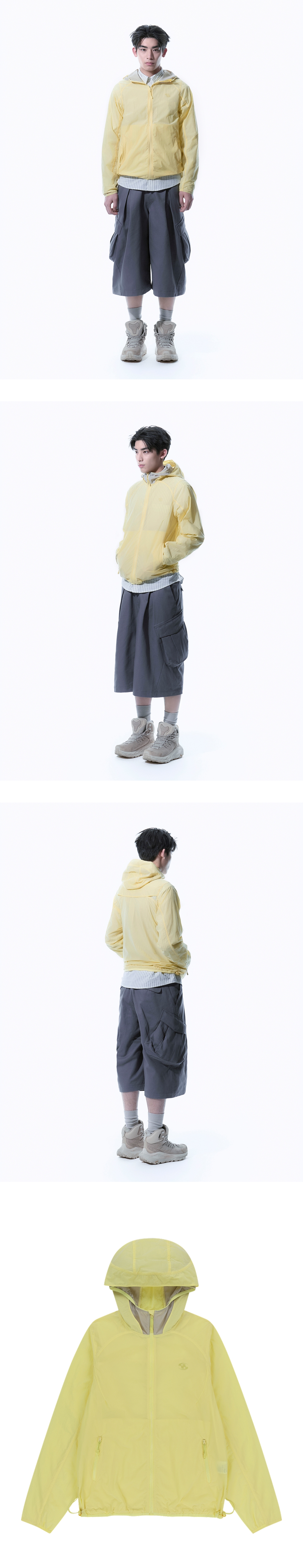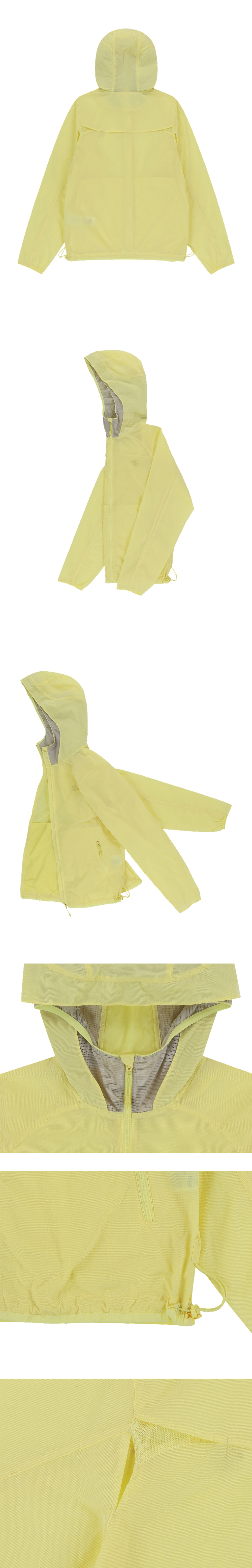 -UV 차단되는 원단 사용 -암홀 트임과 뒷판 벤틸레이션으로 통기성에 용이 -후드 메쉬 소재 레이어드 디테일