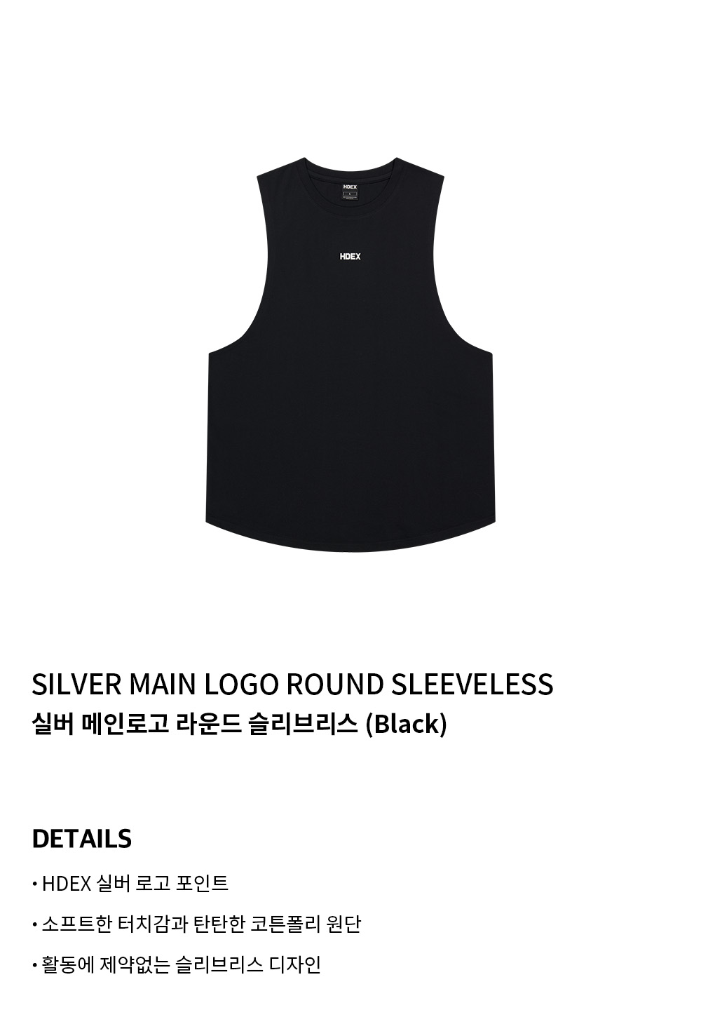 에이치덱스 실버 메인로고 라운드 슬리브리스 블랙