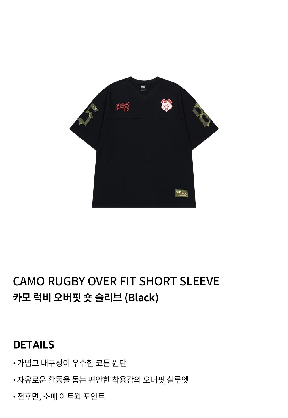 에이치덱스 카모 럭비 오버핏 숏 슬리브 블랙