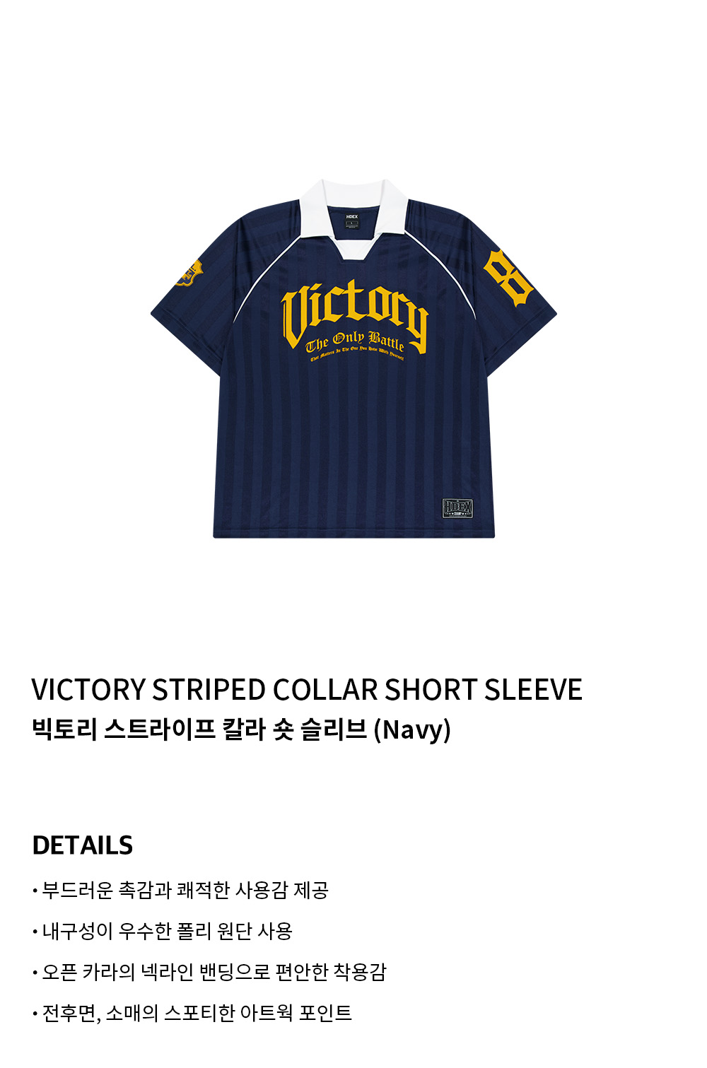 에이치덱스 빅토리 스트라이프 칼라 숏 슬리브 네이비