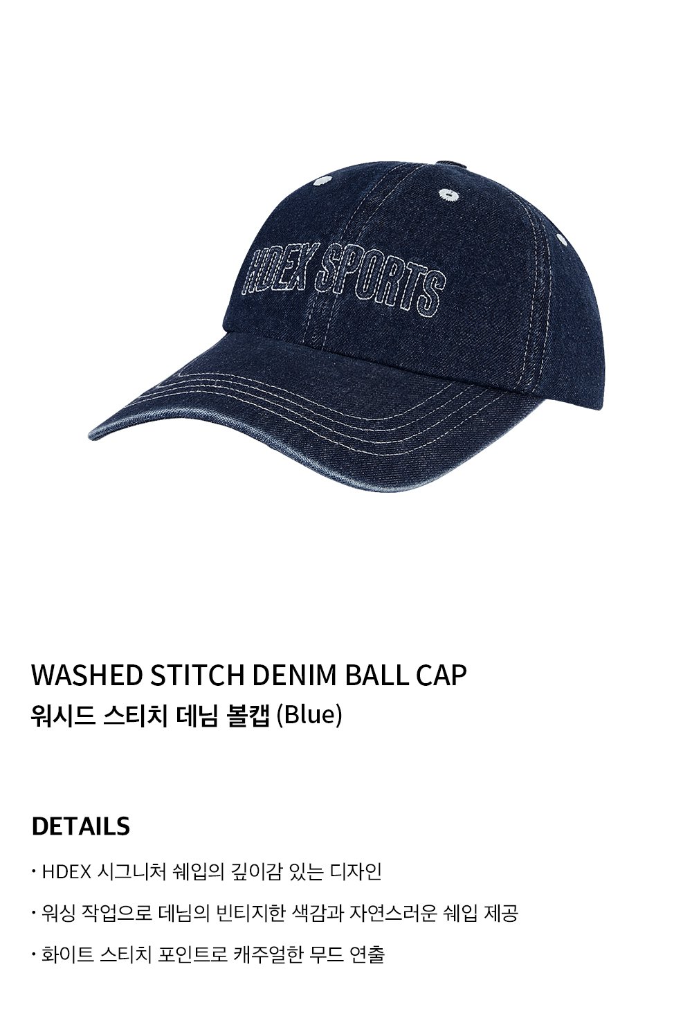 에이치덱스 워시드 스티치 데님 볼캡 Blue