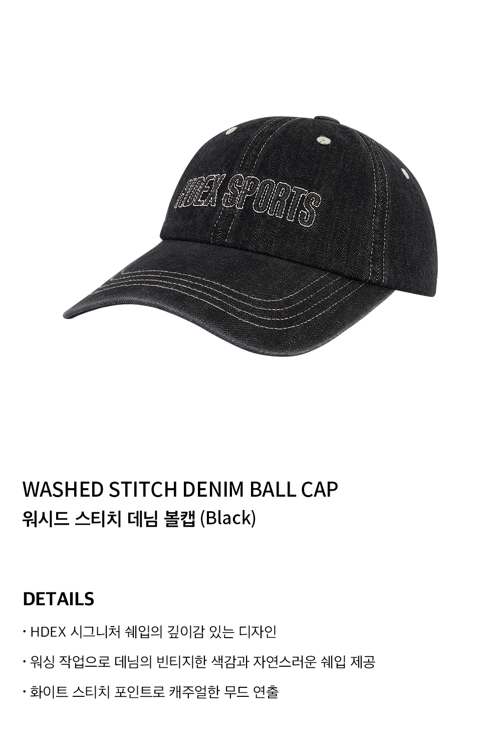 에이치덱스 워시드 스티치 데님 볼캡 블랙