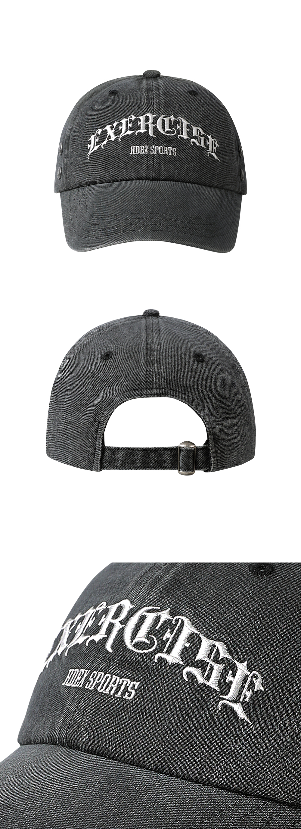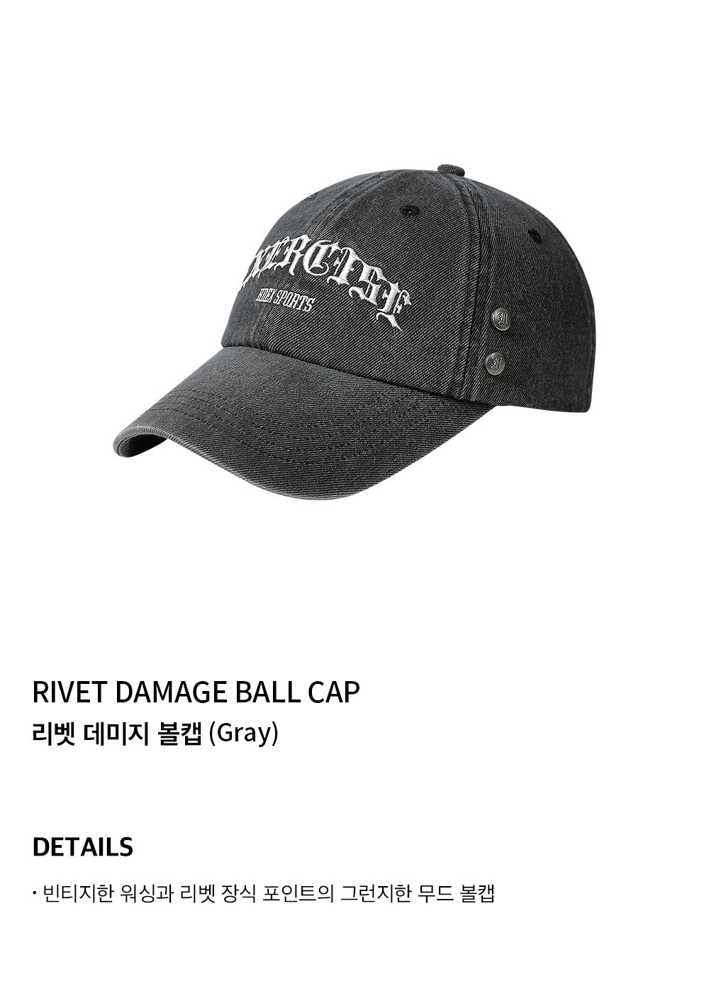 에이치덱스 리벳 데미지 볼캡 그레이