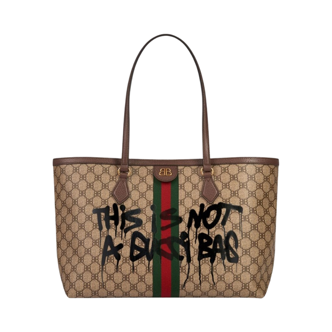 Balenciaga x Gucci The Hacker Project Graffiti Medium Tote Bag Beige Coated Canvas