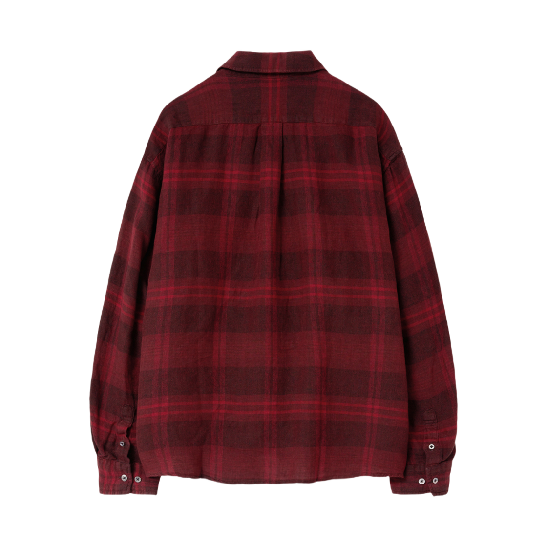 해칭룸 클래식 셔츠 린넨 빅 체크 다크 레드