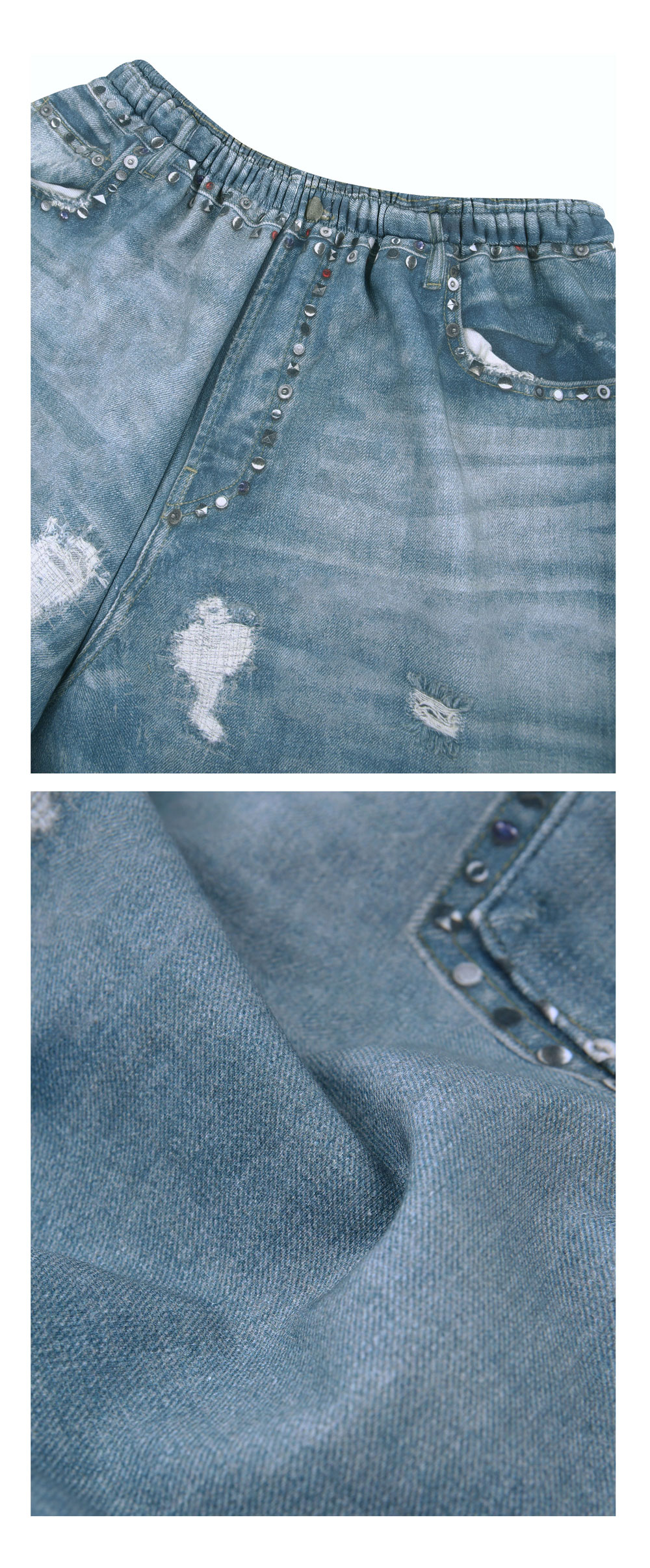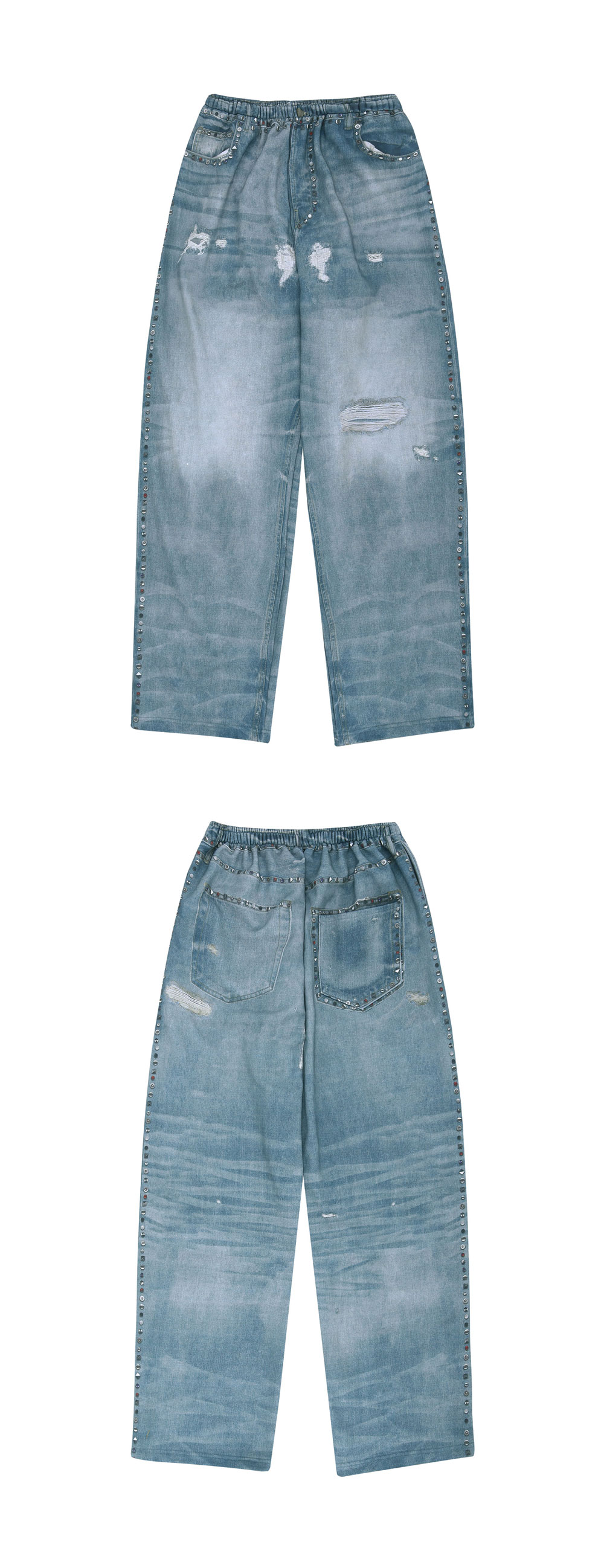 그레일즈 라인스톤 일루전 데님 팬츠 블루