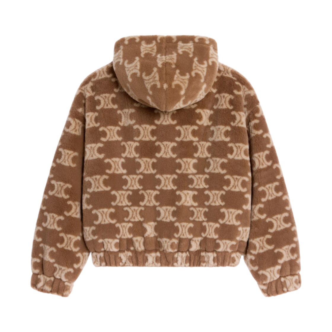 (W) Celine Triomphe Wool and Fur Hoodie Jacket Noisette Ficelle