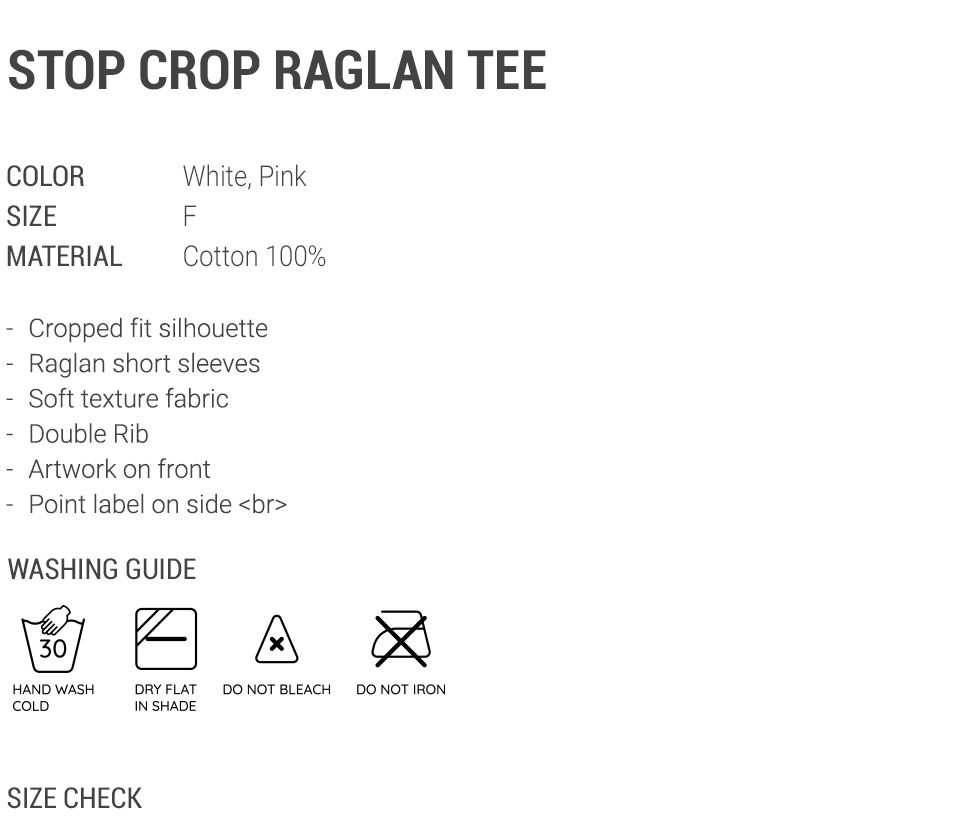 이스트쿤스트 스톱 크롭 레글런 티셔츠 핑크