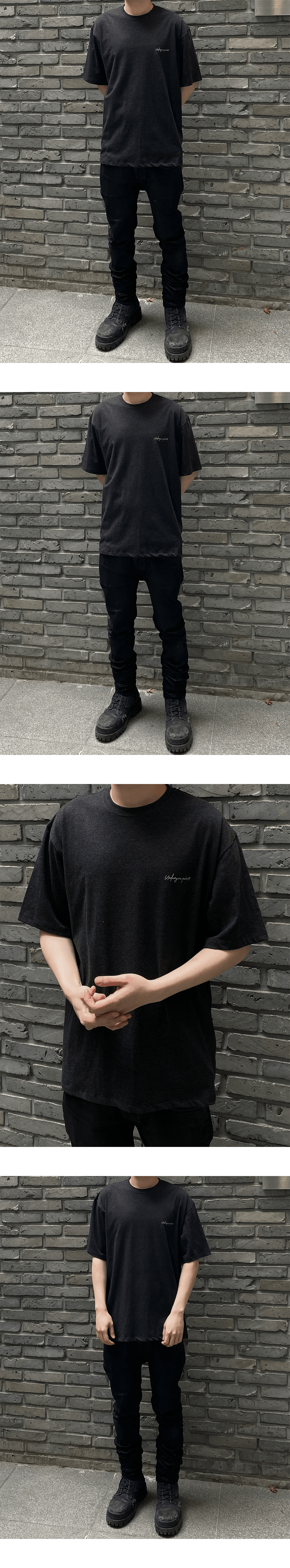 언더마이카 무.104 안티 Fxxking 로고 플레이 엑스트라 루즈 핏 티셔츠 다크 멜란지