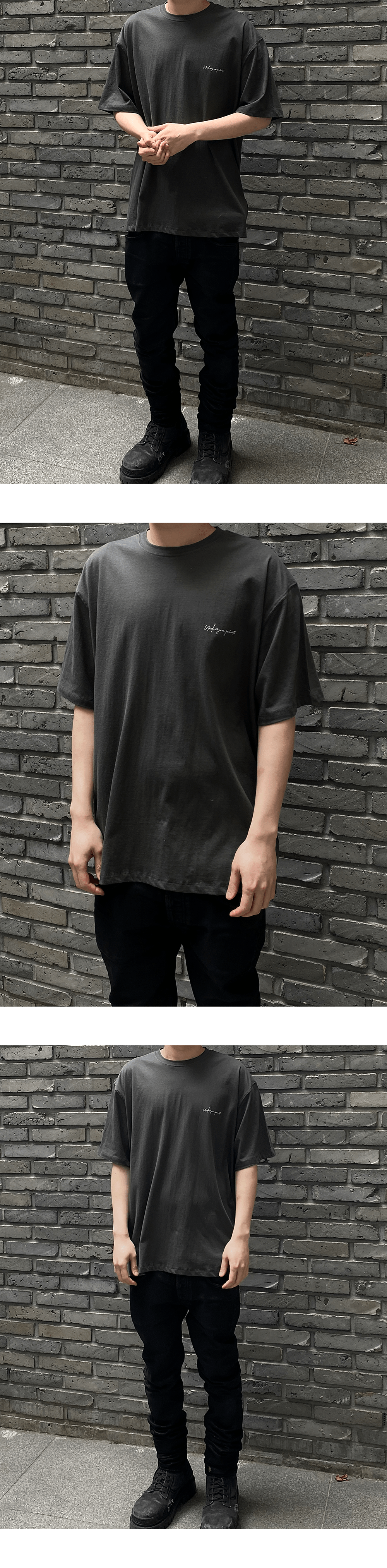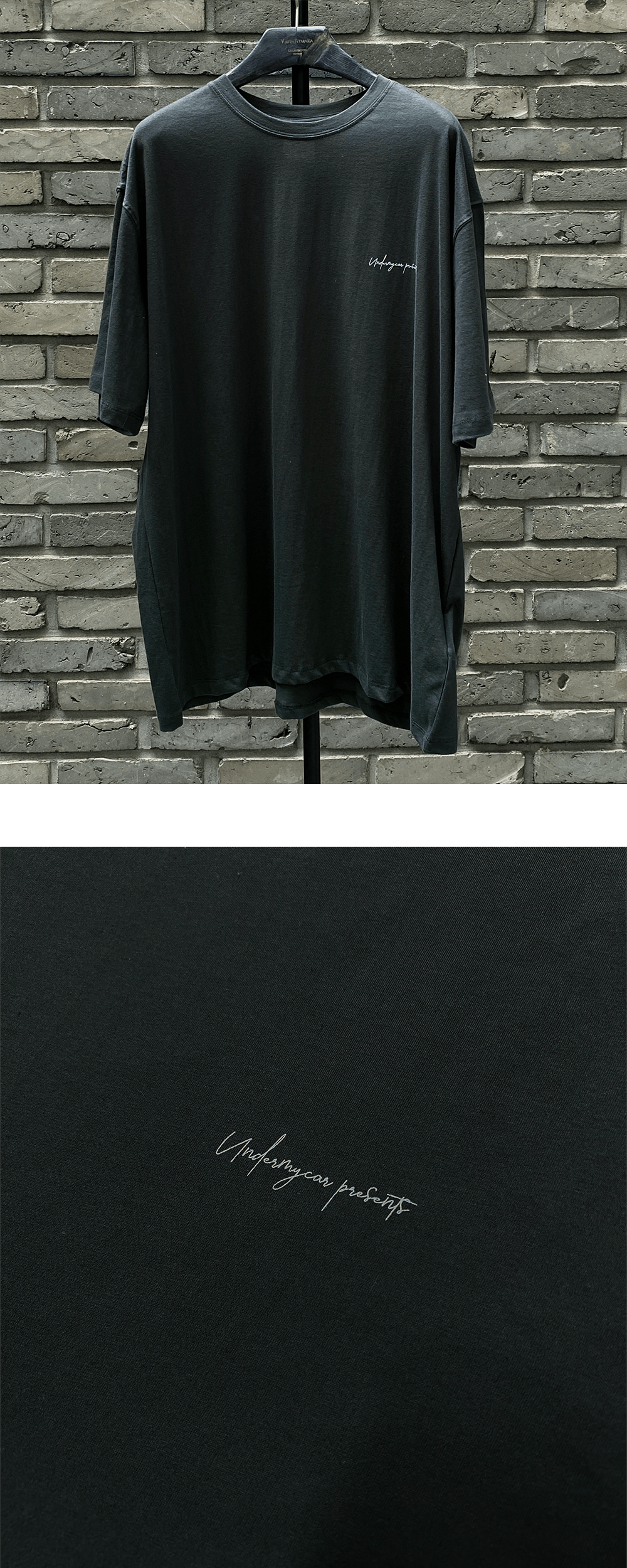 언더마이카 무.104 안티 Fxxking 로고 플레이 엑스트라 루즈 핏 티셔츠 다크 그린