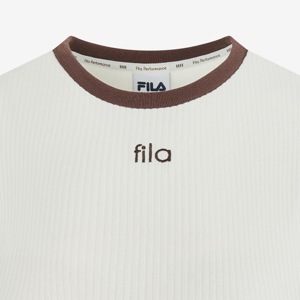 [6% 적립] Fila Ribbed Built-in Cup Crop Short Sleeve T-Shirt