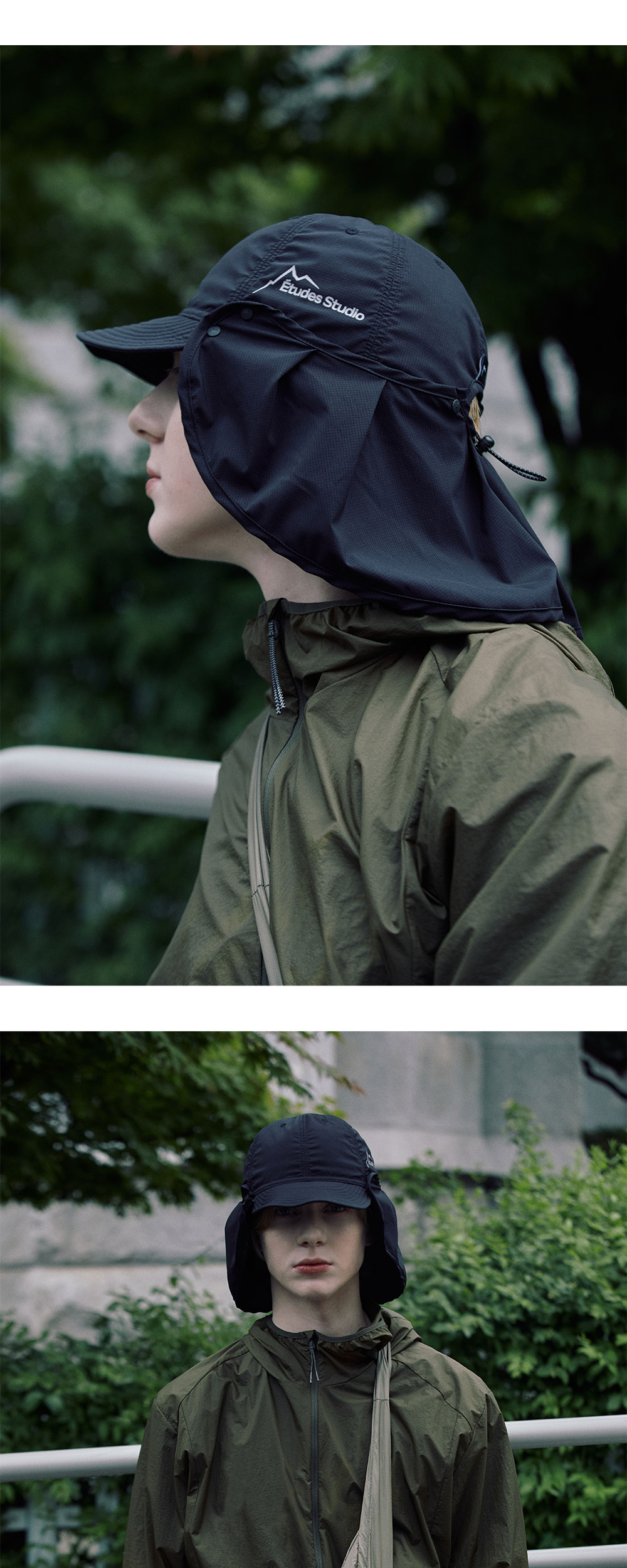 CAYL과 에뛰드 스튜디오의 협업으로 탄생한 에뛰드 스튜디오 케일 하이킹 캡 블랙입니다. - 탈착식 안티 UV 플랩 - 가벼운 소재 - 드로스트링 - 캡 측면에 에투데스 스튜디오 x CAYL 로고 플레이 - Made in Korea