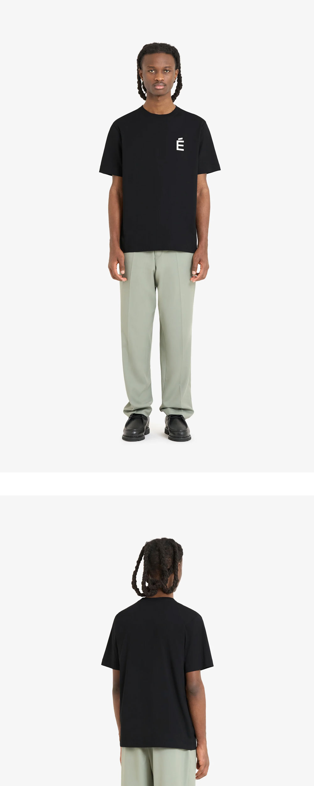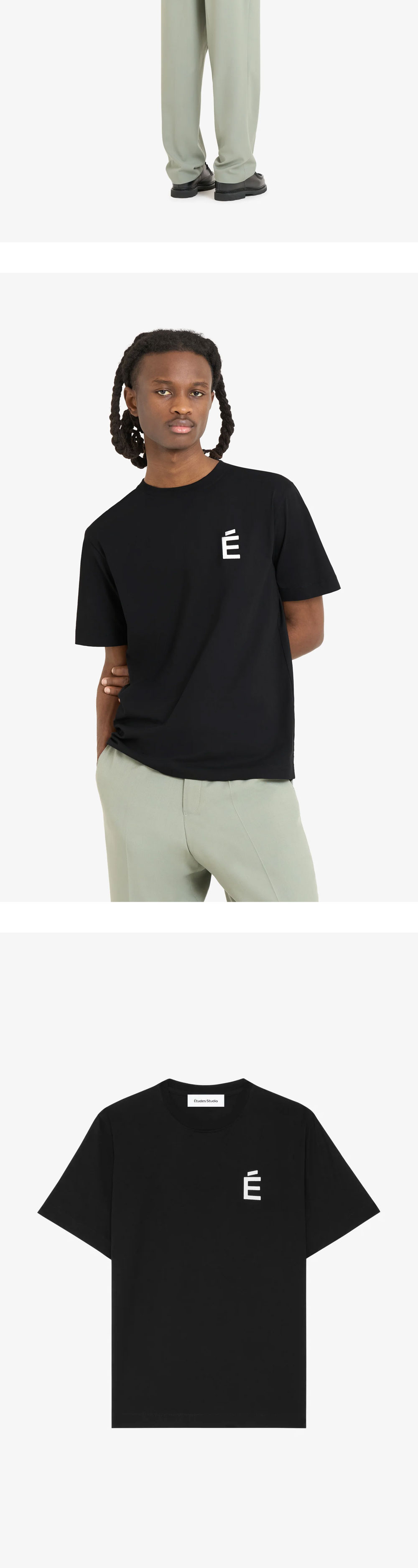 에뛰드 스튜디오 레귤러 티셔츠 E 블랙입니다. - 리브 니트 크루넥 칼라 - 라운드 네크라인 티셔츠 - 가슴에 자수를 놓은 É 로고 - 레귤러 핏 - Made in Portugal * 모델: 184cm, M 사이즈