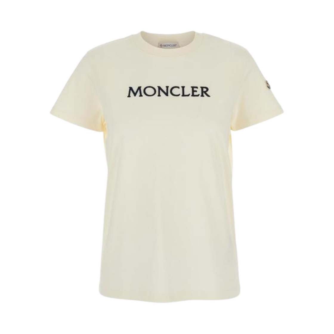 (W) Moncler Embroidered Tonal Logo Cotton T-Shirt White Ivory - 25SS