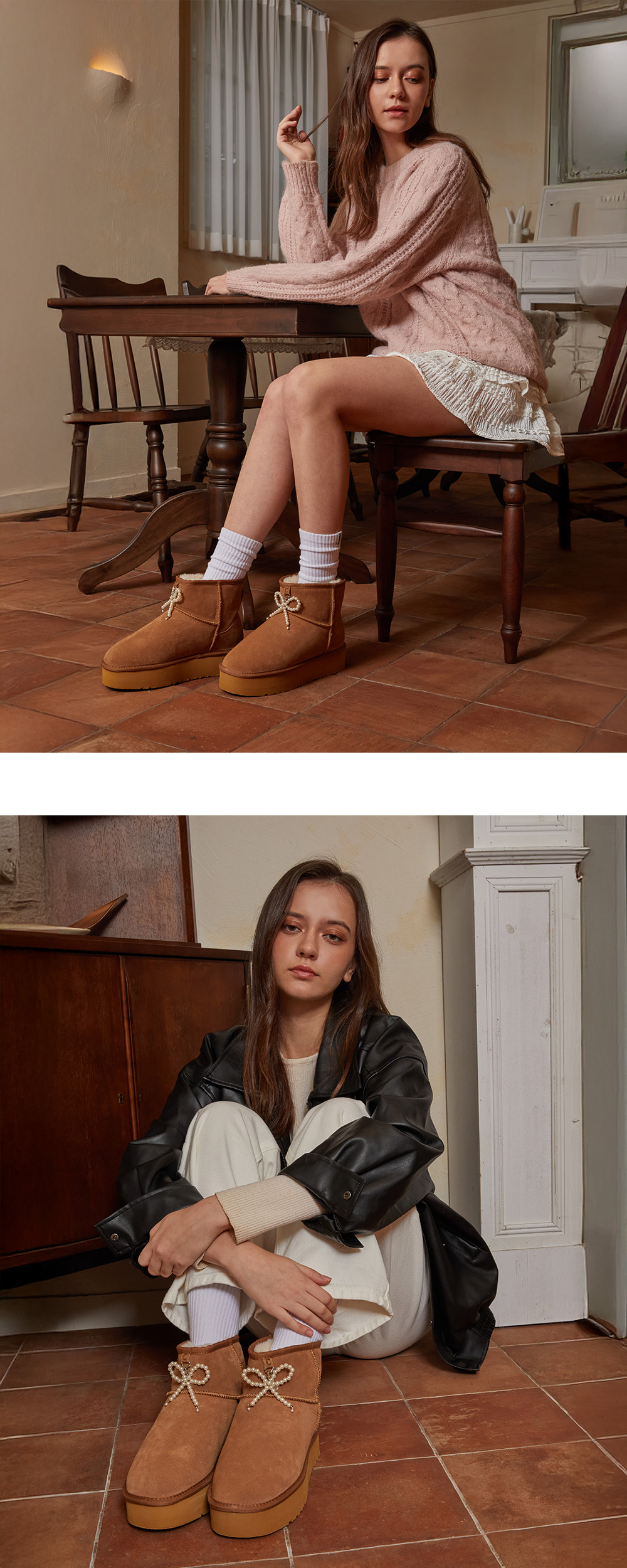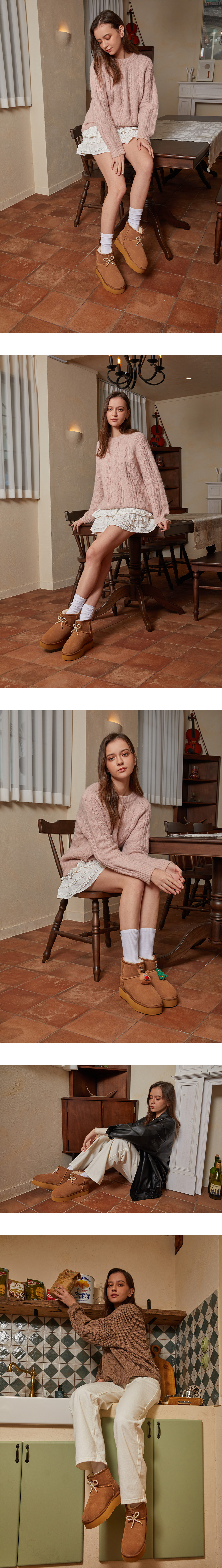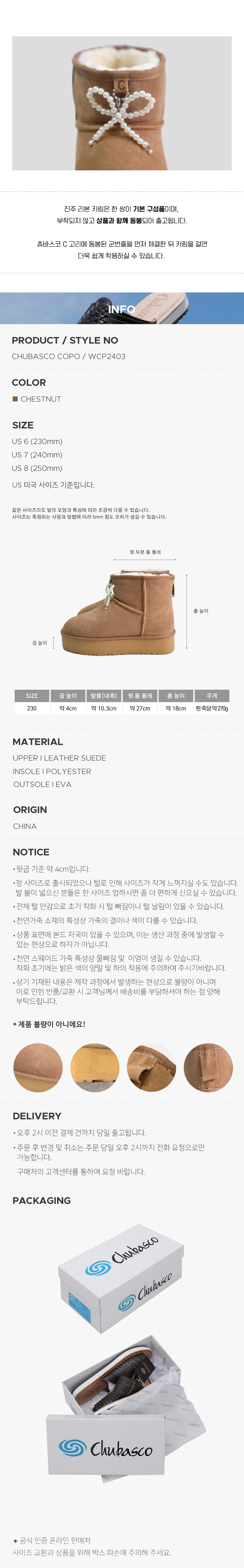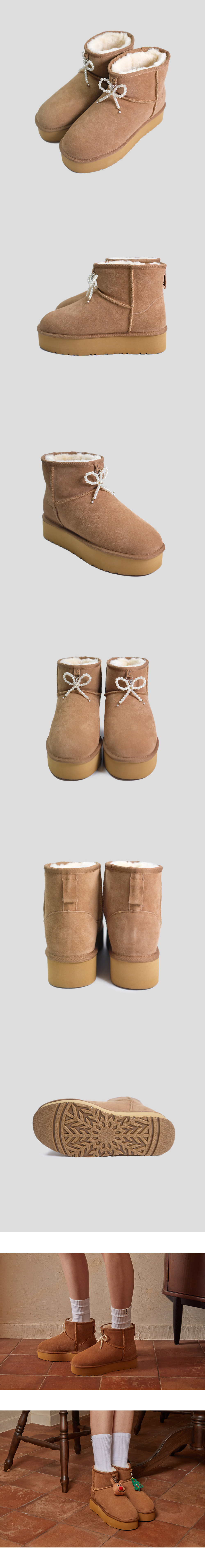 츄바스코 윈터 퍼 부츠 코포 체스트넛 (펄 리본 포함)
