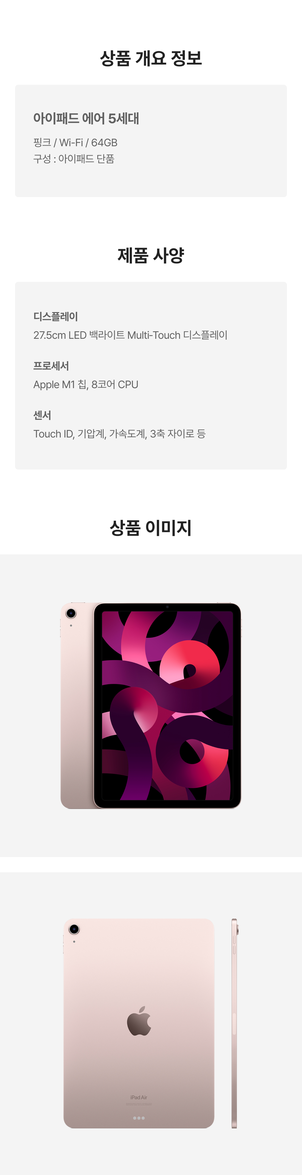 [B등급] 리퍼비시 아이패드 에어 5세대 wifi Apple M1 64기가 핑크