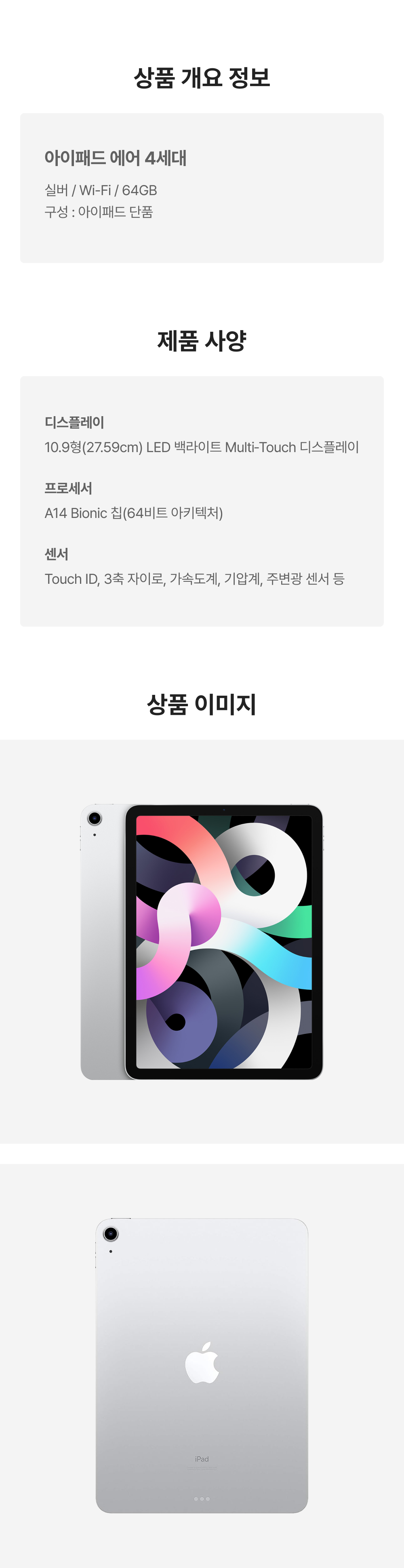 [A등급] 리퍼비시 아이패드 에어 4세대 wifi A14 Bionic 64기가 실버
