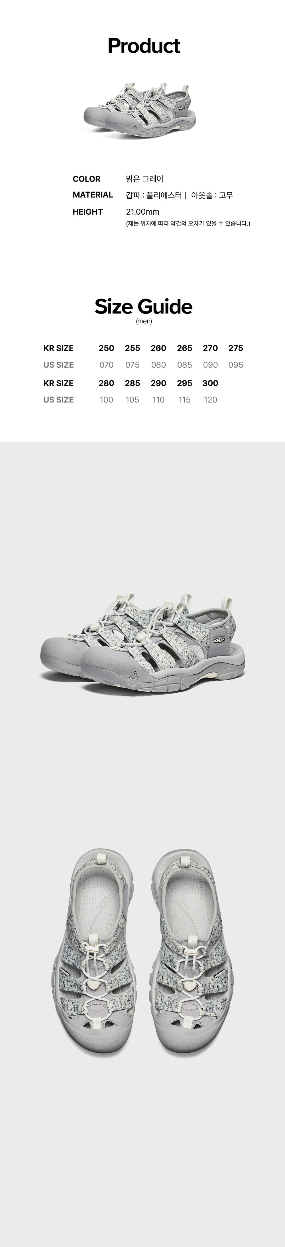 킨X데드다이 뉴포트 레트로 샌들 남성 밝은회색