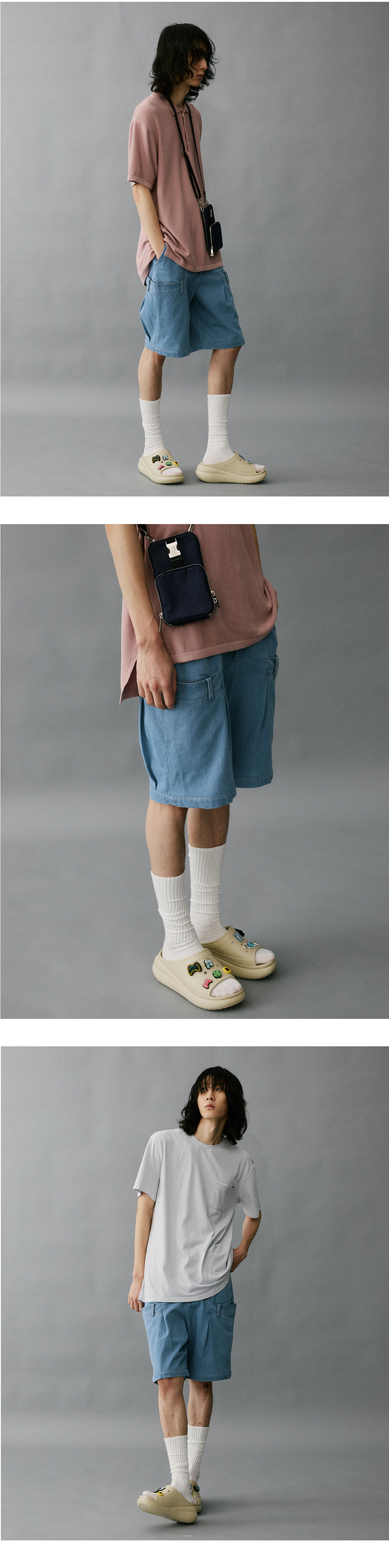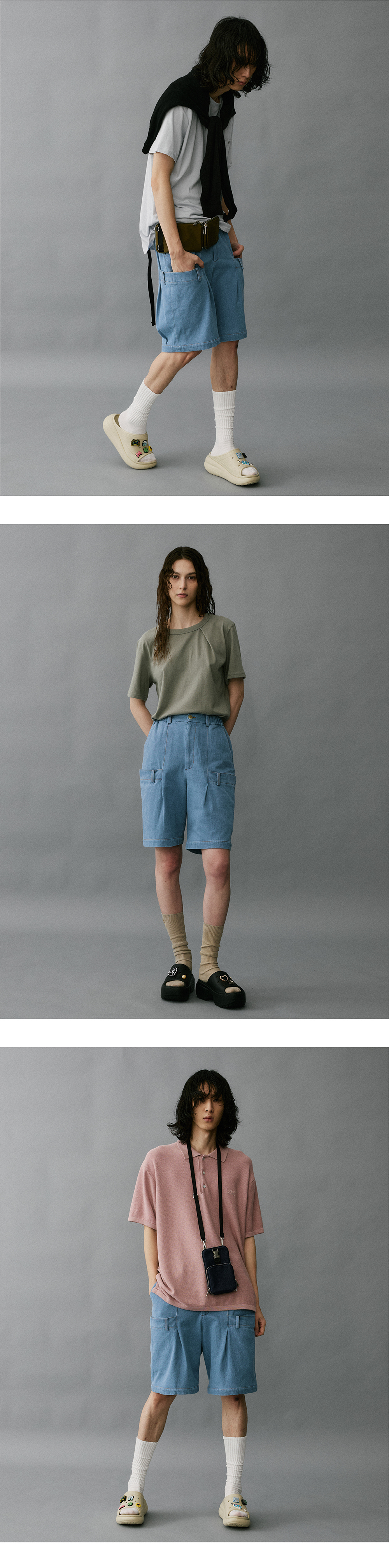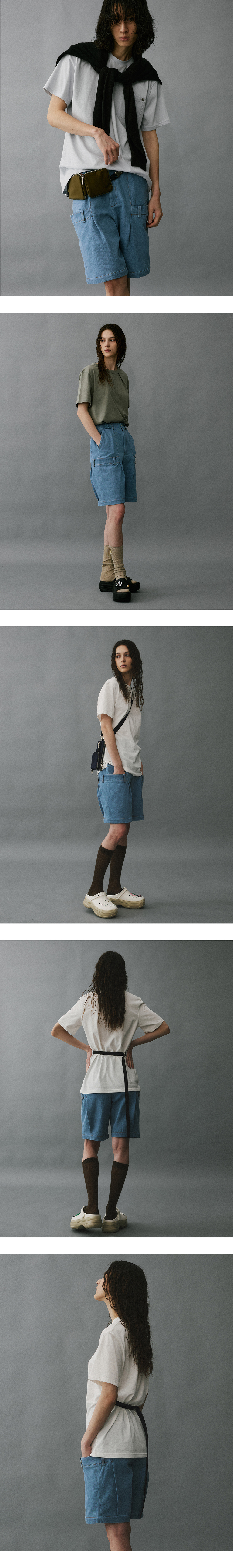 하이투 더블 웨이스트밴드 데님 반바지 라이트 블루