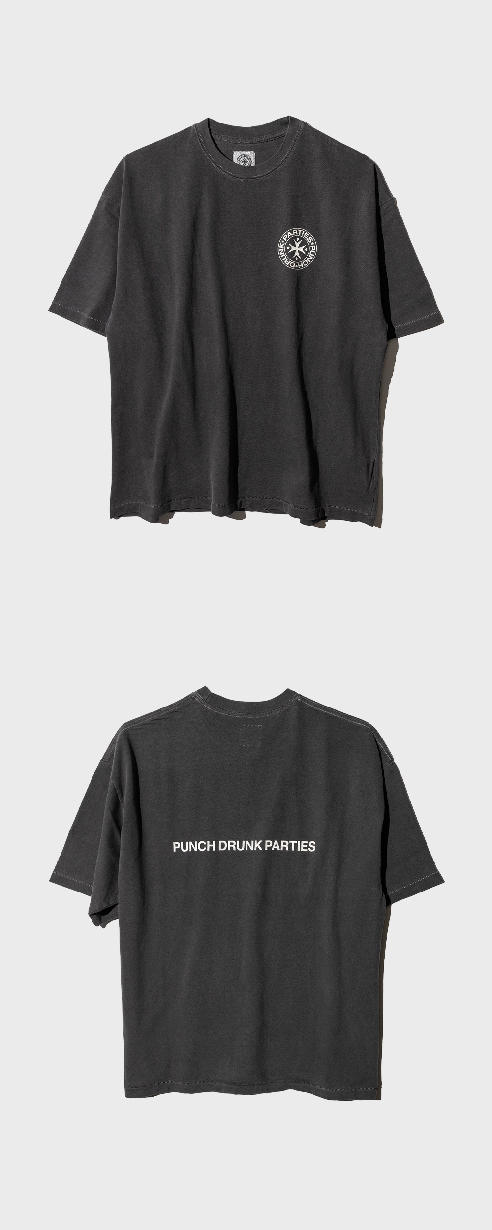펀치 드렁크 파티즈 서클 로고 가먼트 다이드 티 차콜