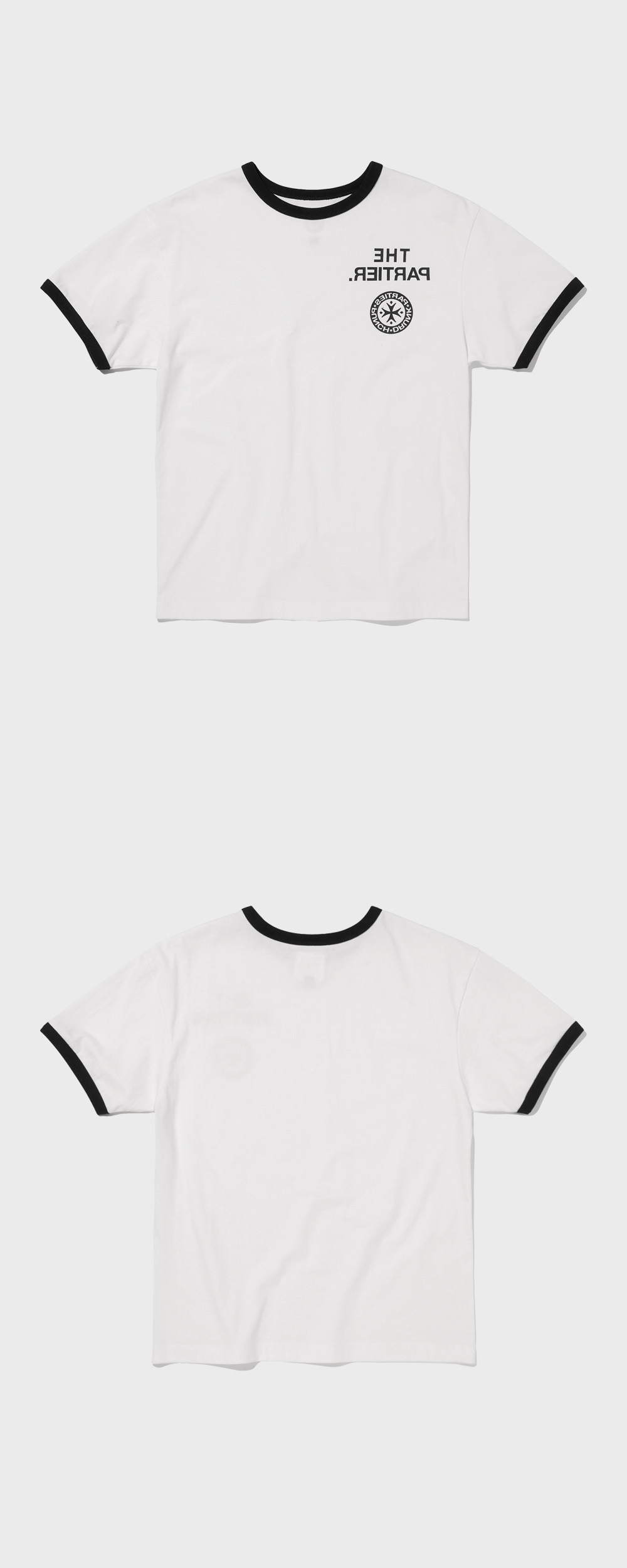 70’s Vintage 복각의 링거 티입니다. 초창기 Parties에서 일부 보여졌던 Mirror Logo 는 좌우가 뒤집혀있는 것이 특징이며 거울을 통해서만 제대로 읽히는 형태입니다 짧은 소매와 적절한 너비로, 신체 실루엣을 적절하게 잡아주는 Classic 실루엣으로 제작 된 제품입니다. 두가지 사이즈로 제작 되었으니, 아래의 사이즈 권장을 반드시 참고해 주세요. * Size 1 / 여성 프리사이즈 및 매우 마른 남성에 해당 * Size 2 / 남성 프리사이즈 Size Guide Male / 180cm, 55kg, Size 2 Male / 183cm, 61kg, Size 2 Female / 174cm, 54kg, Size 1