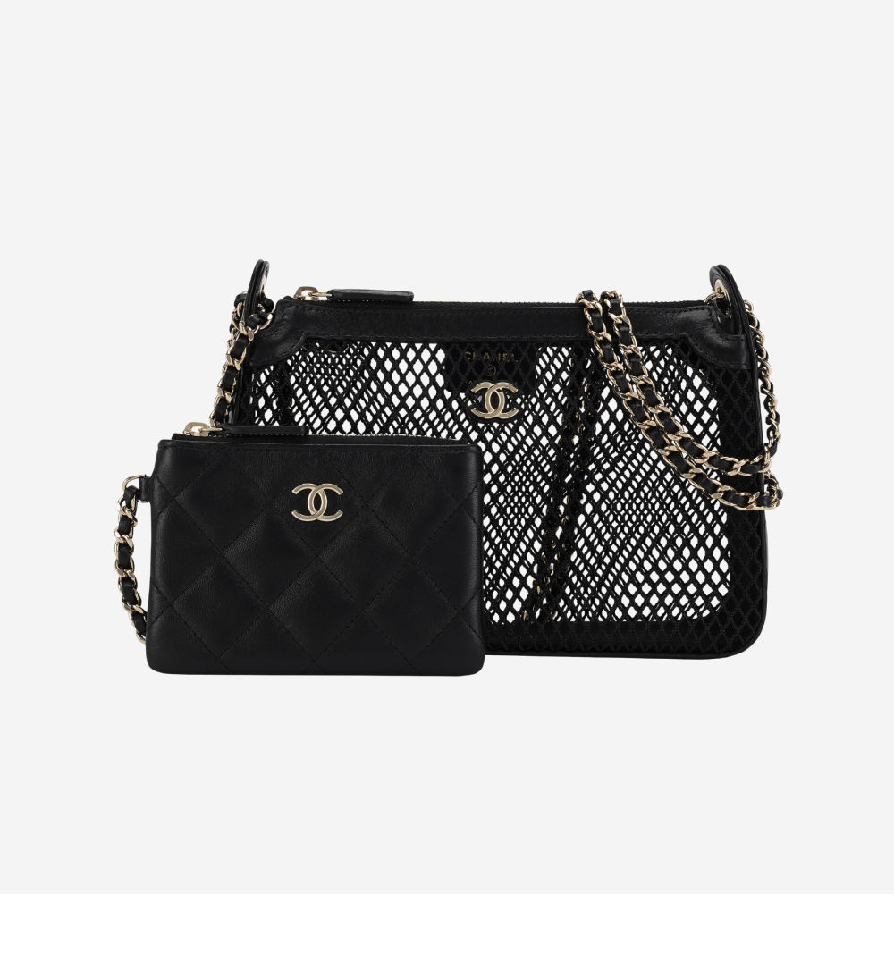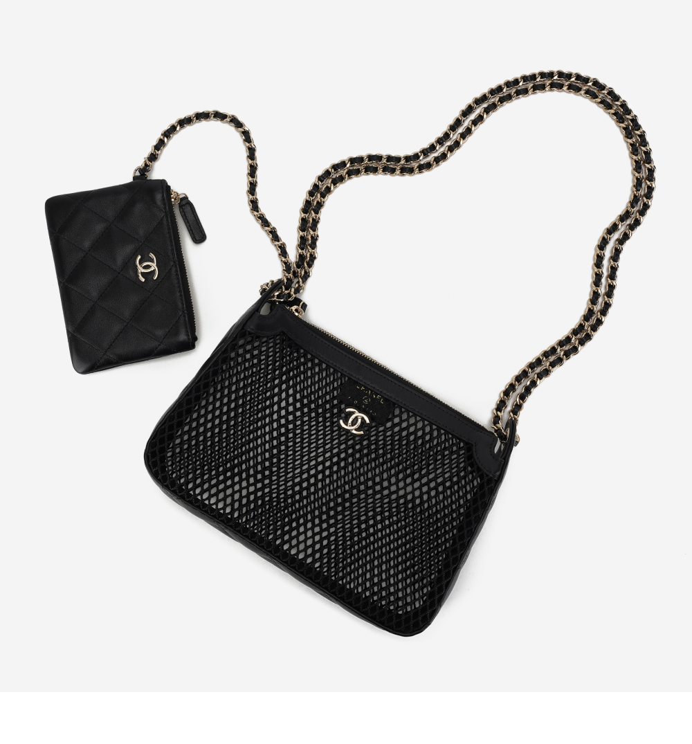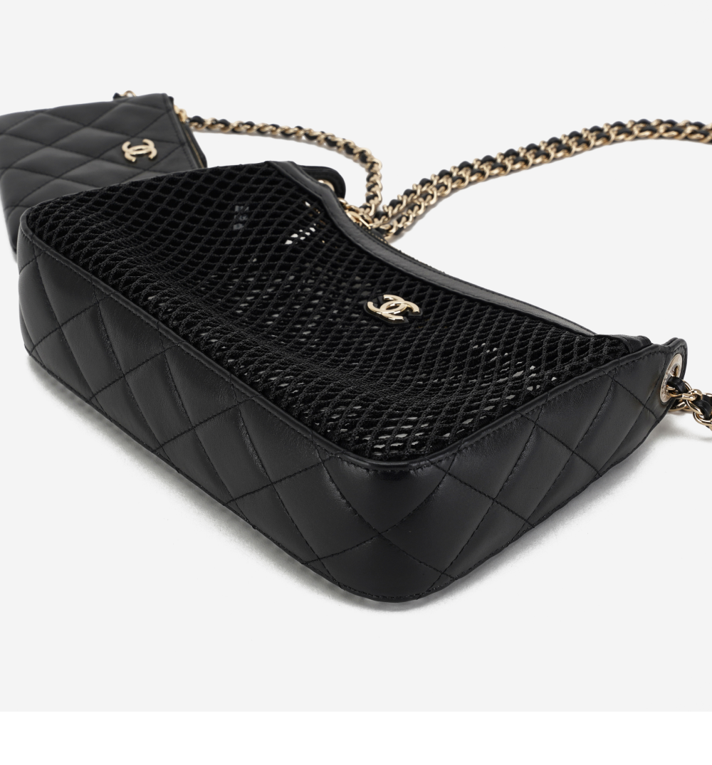 샤넬 체인 달린 미니백 메쉬 샤이니 램스킨 & 골드 메탈 블랙
