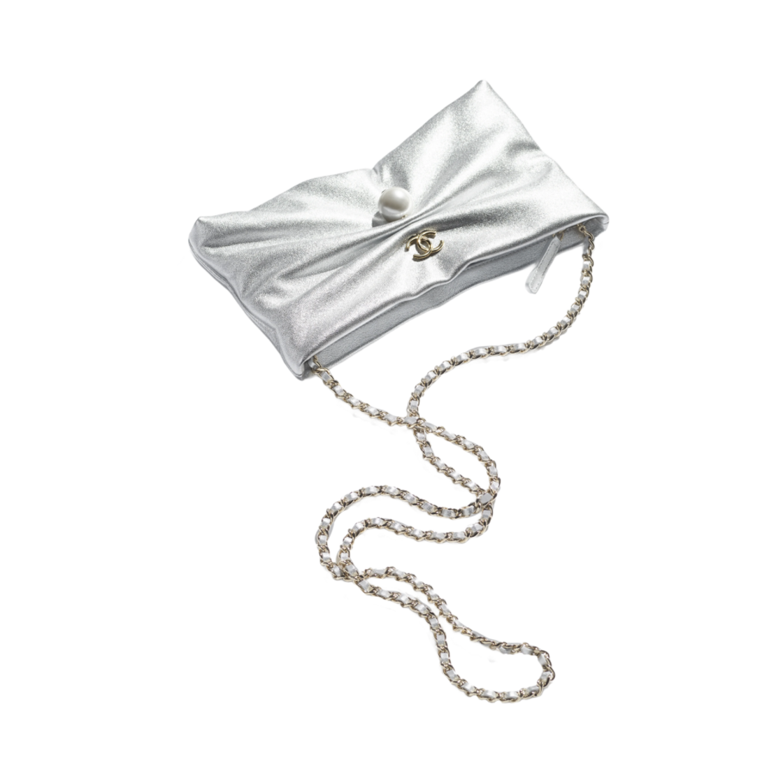 Chanel Clutch with Chain Metallic Lambskin Imitation Pearl & Gold Silver