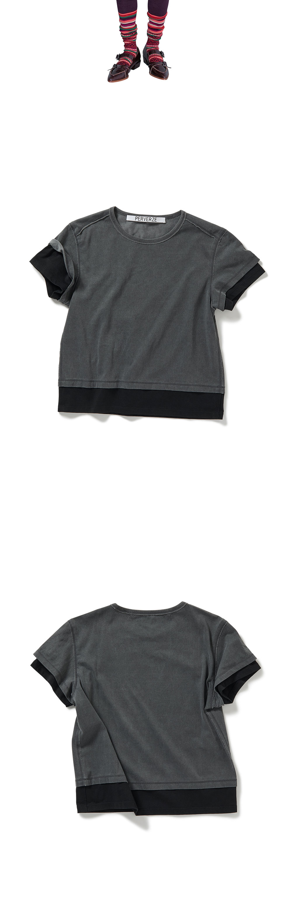 감각적인 컬러 배색과 레이어드 디자인이 돋보이는 퍼버즈의 우먼 더블 레이어드 티 블랙입니다. - 유니크한 레이어드 디테일 - 감각적인 컬러 블록 디자인 - 원워시 가공으로 자연스러운 텍스처 - 트렌디한 숏 기장