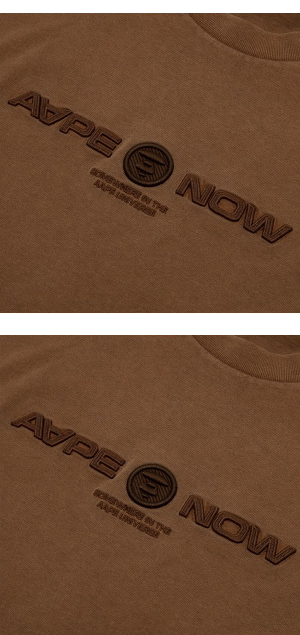미니멀하면서도 세련된 색감이 포인트가 되는 에이프의 나우 티 브라운입니다. -오버사이즈 실루엣 -빈티지 무드의 워싱 디자인 -전면 중앙 및 소매, 어깨 쪽 로고 패치 디테일