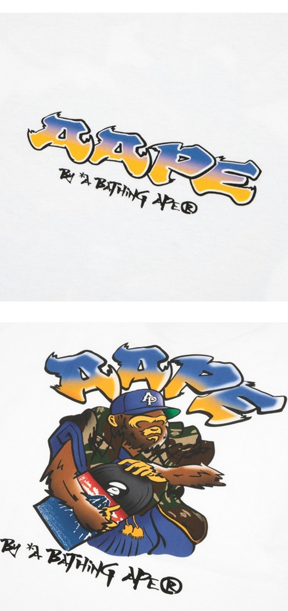 스트릿한 디자인으로 활용도가 높은 에이프의 테마 메인 티 화이트입니다. -블루와 오렌지가 조합된 시크한 로고 디자인 -후면 프린팅 디테일 -오버사이즈 실루엣