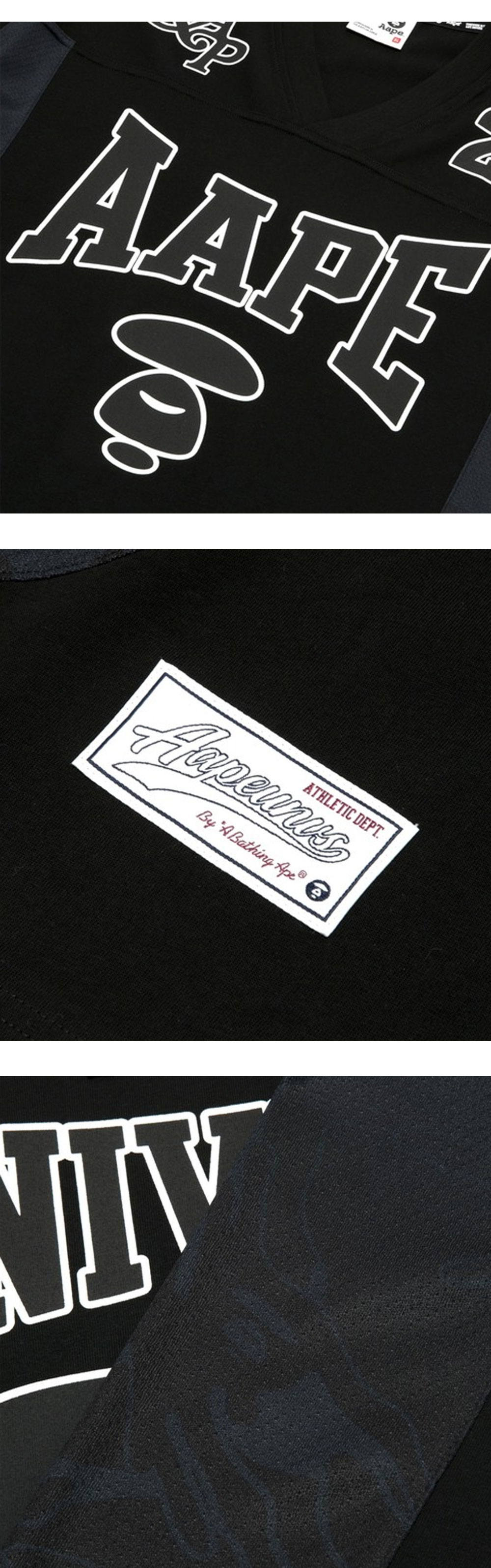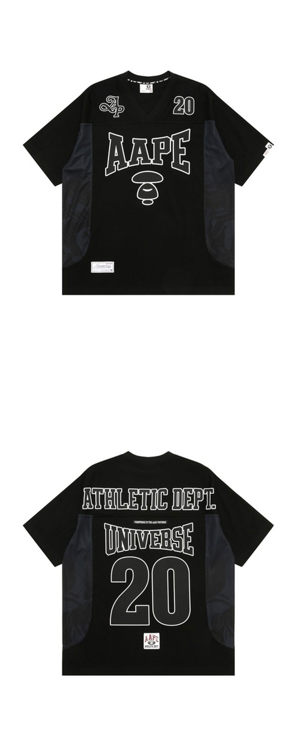 스포티한 무드가 매력적인 에이프의 팬시 메인 티 블랙입니다. - 유니폼 디자인 - 루즈한 실루엣 - 전, 후면 로고 디자인 포인트