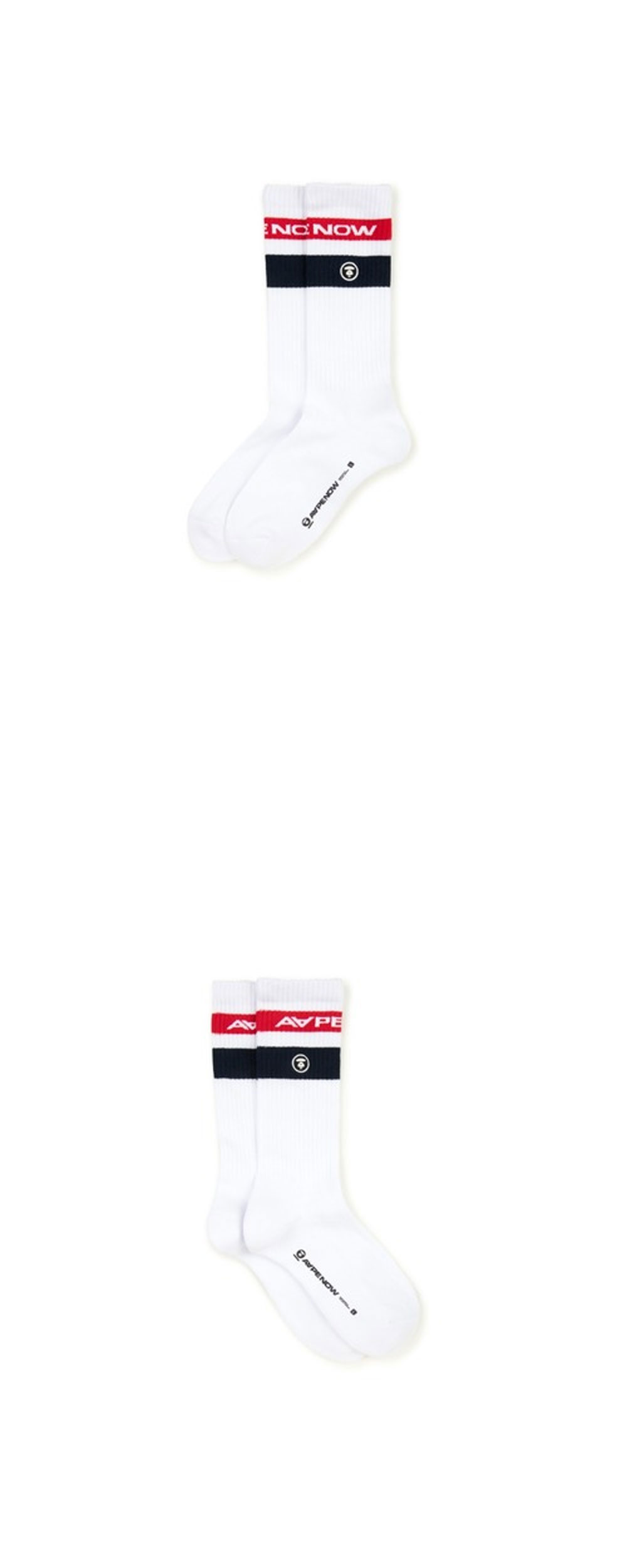 하이컷 또는 로우컷 스니커즈 모두와 잘 어울리는 에이프의 나우 삭스 화이트 레드입니다. -발목 쪽 블랙 & 레드 배색 로고 디테일 -바닥 쪽 텍스트 로고