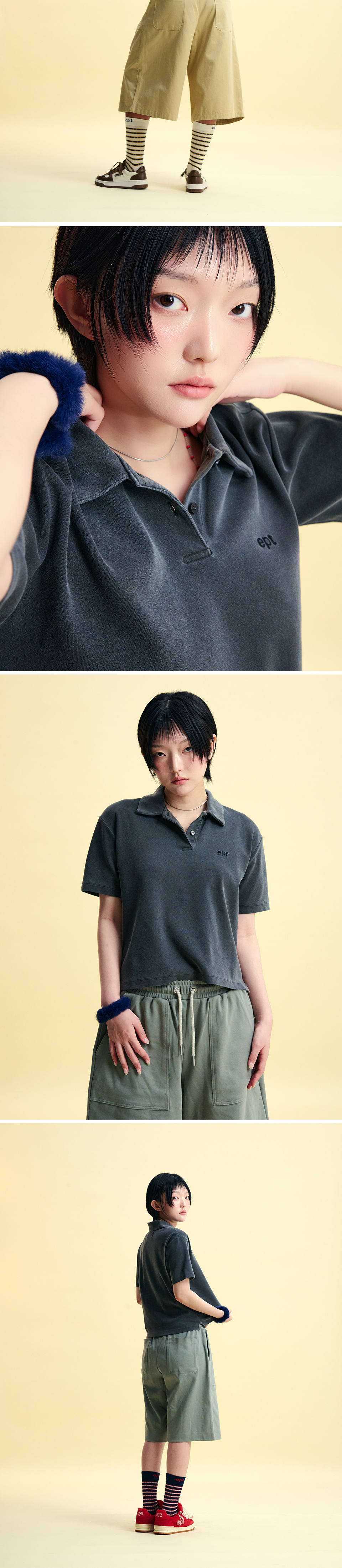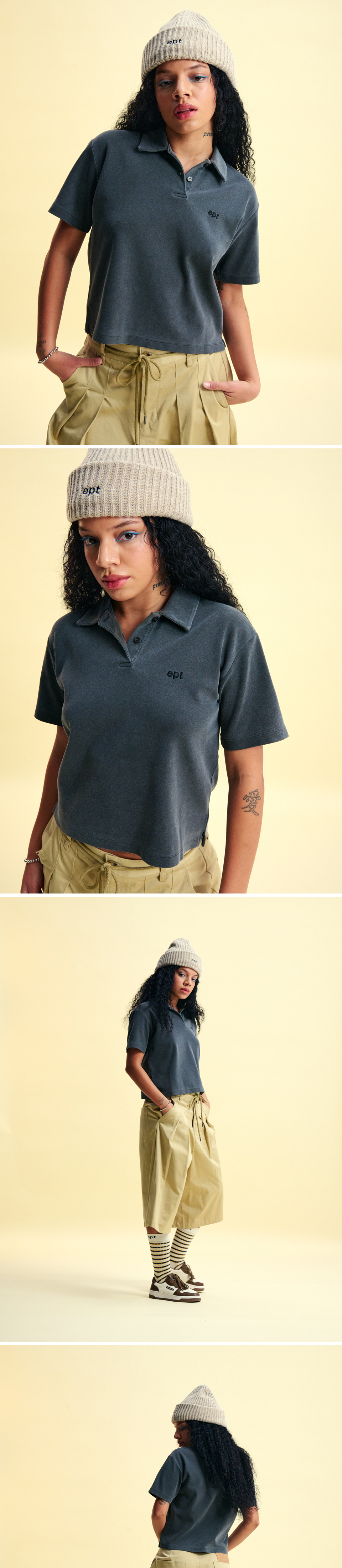 이피티 우먼 셀 피그먼트 폴로 티 차콜