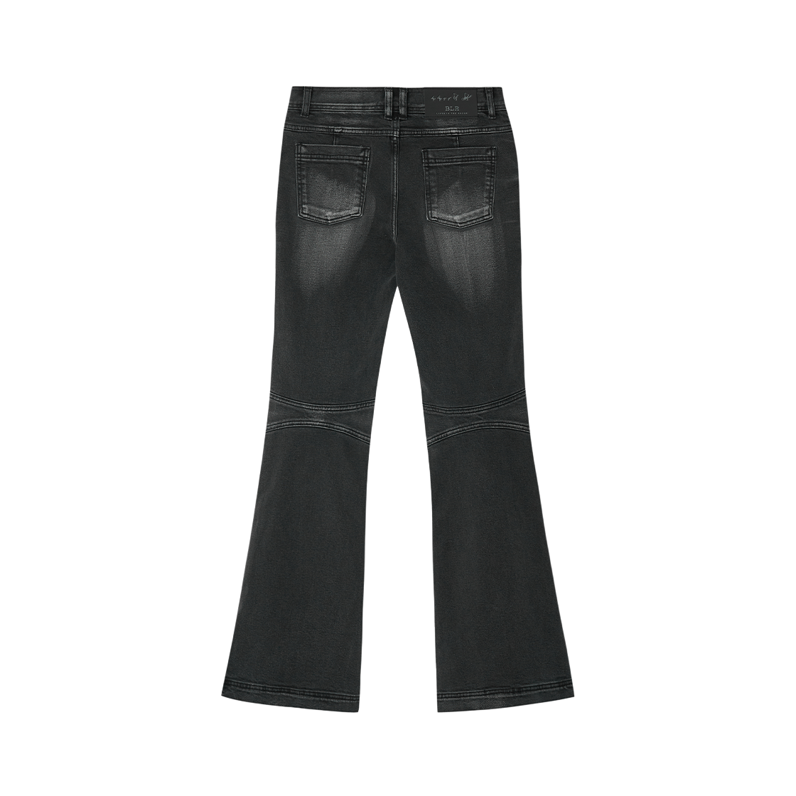 (W) BLR Embossed Wave Washing Boots Cut Denim Pants Grey