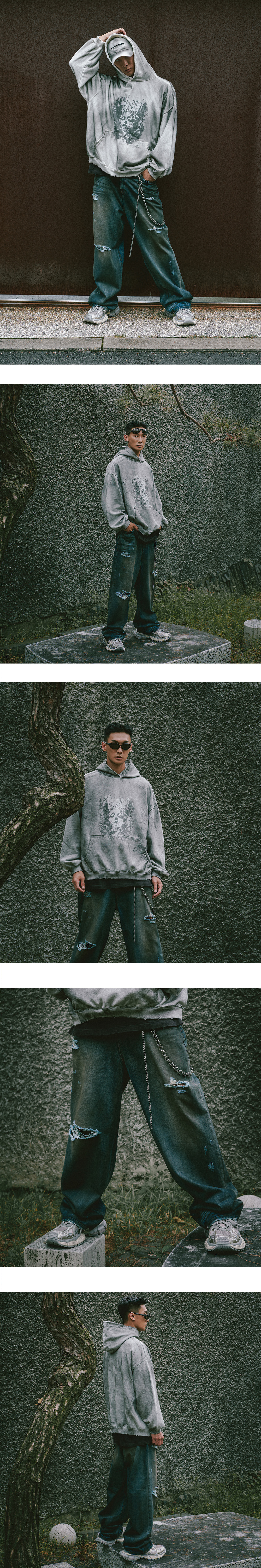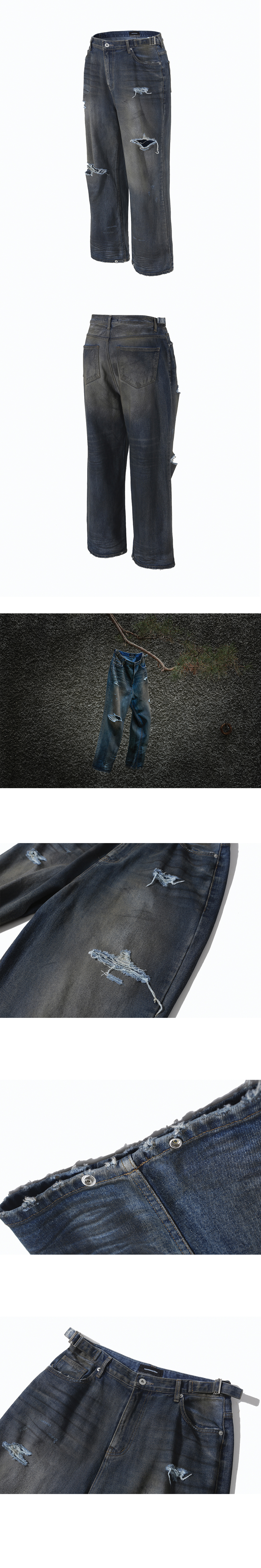Fabric : Cotton 100% , 12oz ⠀ - 와이드 핏 - 두 가지 색상의 더티 스프레이 효과 - 한 가지 색상의 더티 오일 효과 - 불규칙 디스트로이드 효과 - 허리 사이즈 조절 비조 - 밑단 넓이 조절 스냅 - 모든 부자재 YKK 社 제품 사용 - 세 가지 색감의 효과를 입힌 제품으로서, 빛이나 각도에 따라 색감이 달리 보이는 효과 • 제조국 : 대한민국 • 중성 세제, 드라이 클리닝, 드럼 세탁기 사용 불가 • 워싱에 따른 물빠짐이 생길 수 있으며, 가급적 가벼운 물세탁 권장 • 핸드메이드 제품으로 워싱 및 효과는 제품마다 상이 할 수 있음 Model Spec : 183cm , 70kg , L size Size Guide (단위 CM) : M : 허리 41, 허벅지 34, 밑위 35, 밑단 26, 총기장 110 L : 허리 44, 허벅지 36, 밑위 37, 밑단 28, 총기장 112