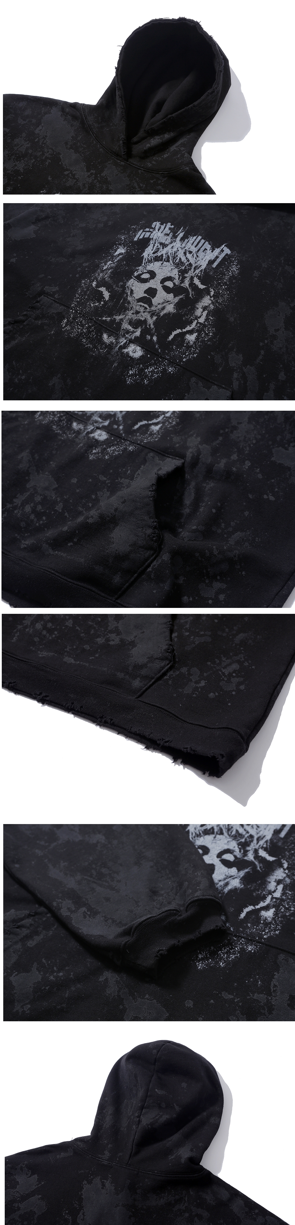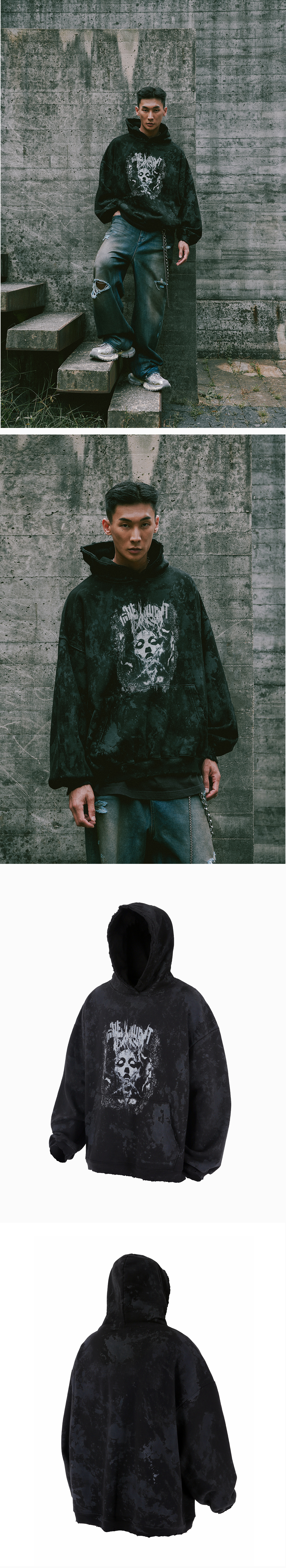 Fabric : Cotton 100% - 오버 핏 - 핸드메이드 더티 오일 작업 - 후드, 소매, 밑단, 주머니 디스트로이드 작업 - Digital text printing 날염 작업 - Heavy weight, 890g/YD • 제조국 : 대한민국 • 중성 세제, 드라이 클리닝, 드럼 세탁기 사용 불가 • 워싱에 따른 물빠짐이 생길 수 있으며, 가급적 가벼운 물세탁 권장 • 핸드메이드 제품으로 워싱 및 효과는 제품마다 상이 할 수 있음 Model Spec : 183cm , 70kg , L size Size Guide (단위 CM) : M : 어깨 68, 가슴 73, 소매 55, 총장 70 L : 어깨 71, 가슴 76, 소매 56, 총장 71