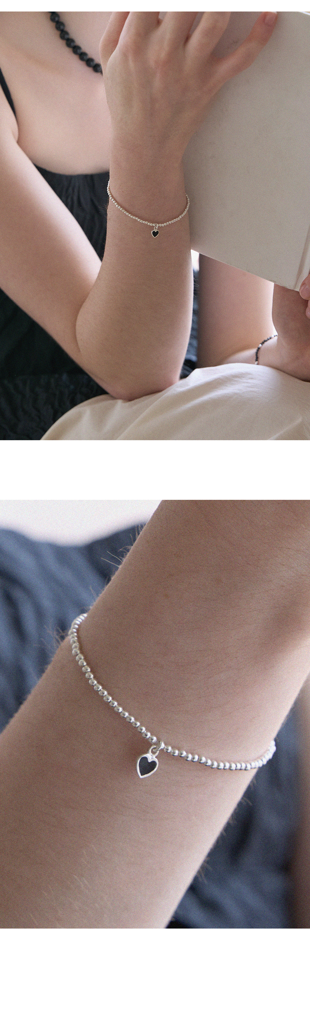 바이위켄드 블랙 하트 프리 브레이슬릿 실버