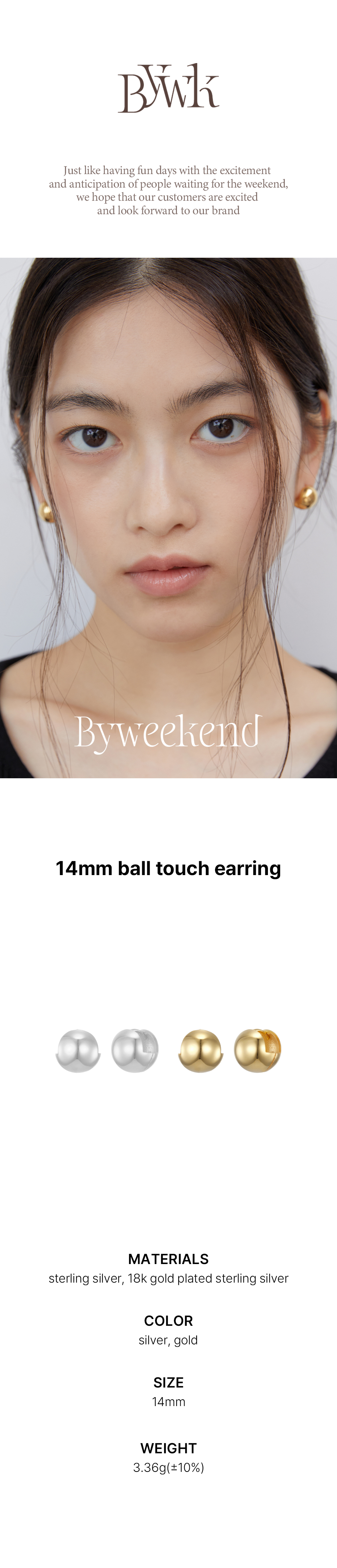 바이위켄드 14mm 볼 터치 이어링 실버
