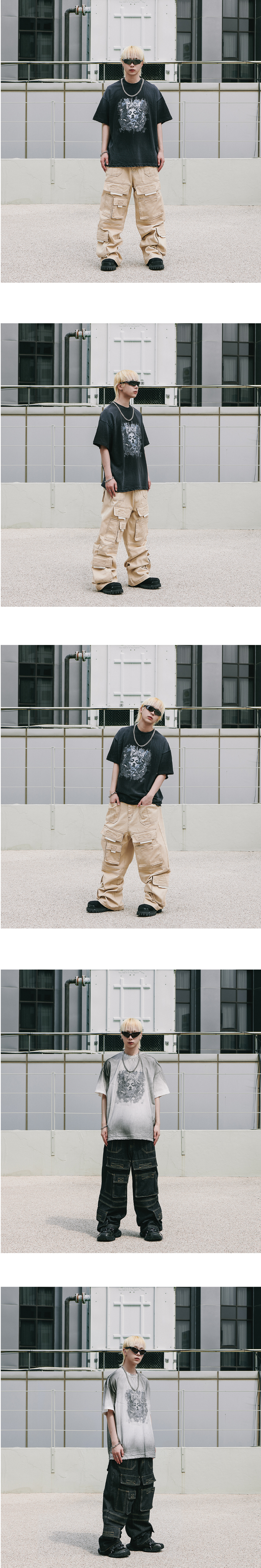 Fabric : Cotton 100% - 오버 핏 - 빈티지 워싱 - 전면 그래픽 디자인 - 핸드메이드 더티 스프레이 작업 - 넥, 소매, 밑단, 주머니 디스트로이드 작업 • 제조국 : 대한민국 • 중성 세제, 드라이 클리닝, 드럼 세탁기 사용 불가 • 워싱에 따른 물빠짐이 생길 수 있으며, 가급적 가벼운 물세탁 권장 • 핸드메이드 워싱 제품으로 워싱 효과는 제품마다 상이 할 수 있으며, 워싱으로 인한 사이즈 오차 범위가 있을 수 있습니다. Size Guide (단위 CM) : L : 어깨 58, 가슴 62, 총장 74, 소매 20 XL : 어깨 60, 가슴 65, 총장 75, 소매 21