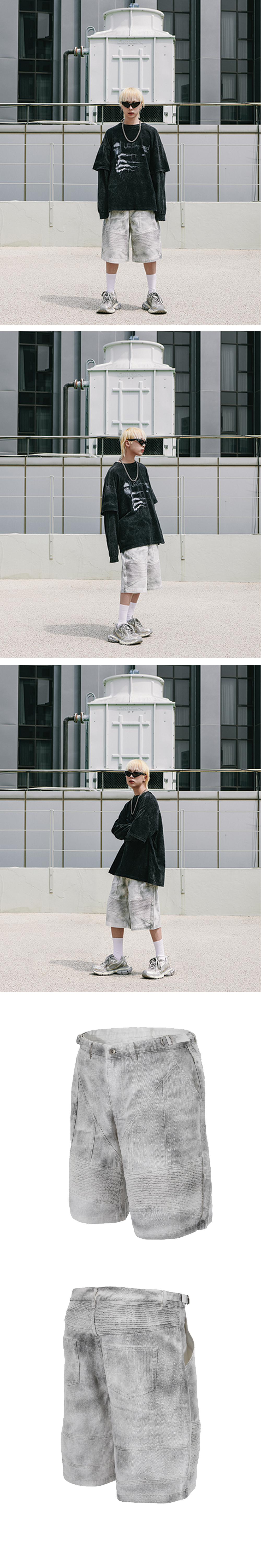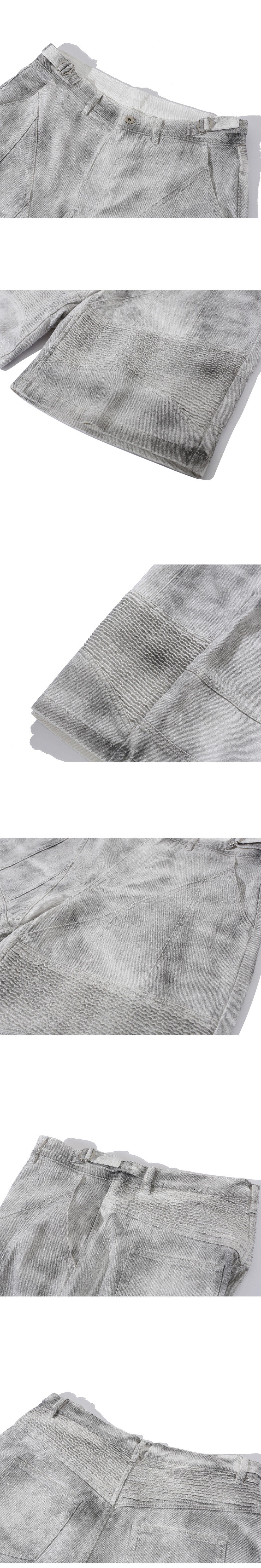 Fabric : Cotton 100% - 버뮤다 핏 - 절개 디테일 - 주름 설명 - 빈티지 워싱 - 더티 스프레이 효과 - 허리 사이즈 조절 비조 - 지퍼 및 스냅 YKK 社 제품 사용 • 제조국 : 대한민국 • 중성 세제, 드라이 클리닝, 드럼 세탁기 사용 불가 • 워싱에 따른 물빠짐이 생길 수 있으며, 가급적 가벼운 물세탁 권장 • 핸드메이드 제품으로 워싱 및 효과는 제품마다 상이 할 수 있음 Size Guide (단위 CM) M : 허리 42 , 밑위 36 , 허벅지 38 , 엉덩이 59 , 밑단 34 , 총장 64 L : 허리 45 , 밑위 37 , 허벅지 40 , 엉덩이 61 , 밑단 35 , 총장 65